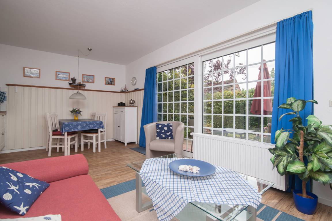 Die gemütliche Erdgeschoß-Wohnung hat eine Größe von 50 qm und befindet sich in einer ruhigen Wohnlage in unmittelbarer Deichnähe. Trotz dieser ruhigen Lage ist der Ortskern mit seinen zahlreichen Restaurants, Cafés und dem berühmten Greetsieler Hafen nur wenige Gehminuten entfernt.