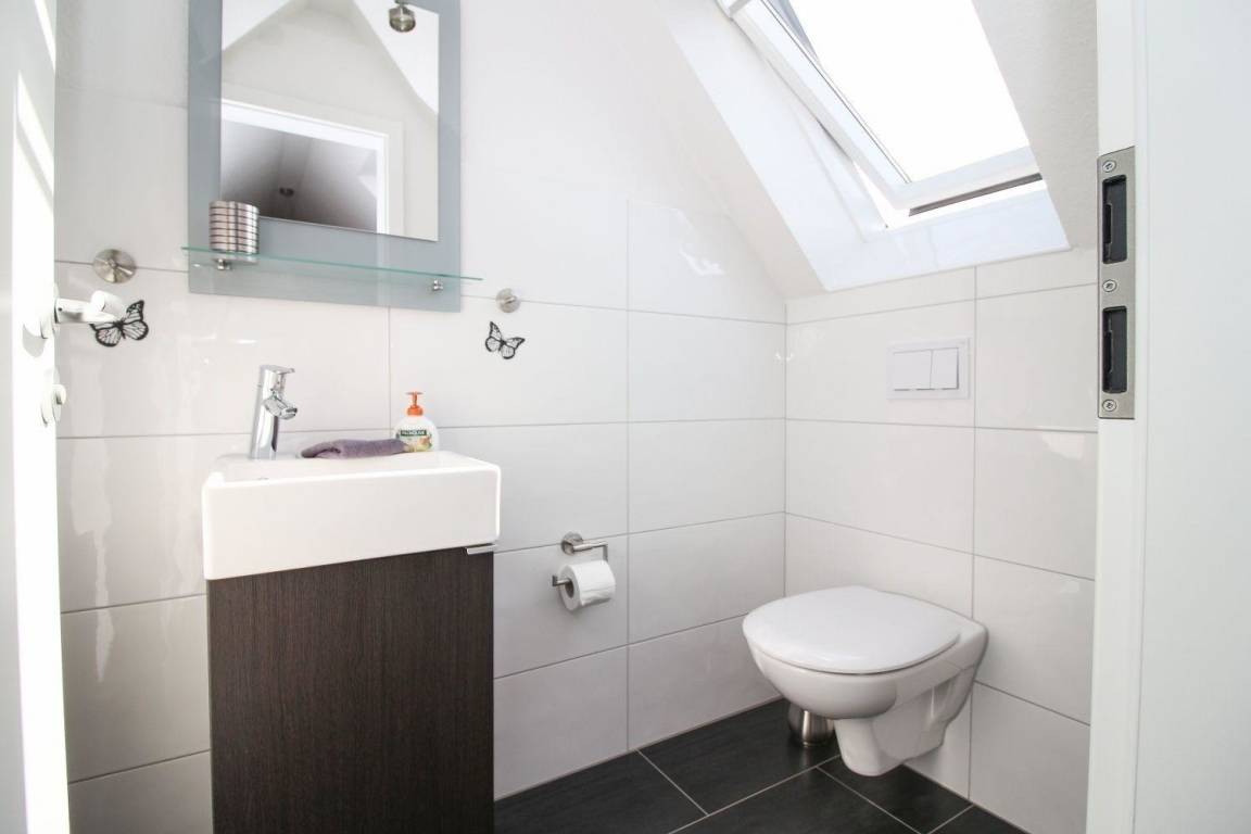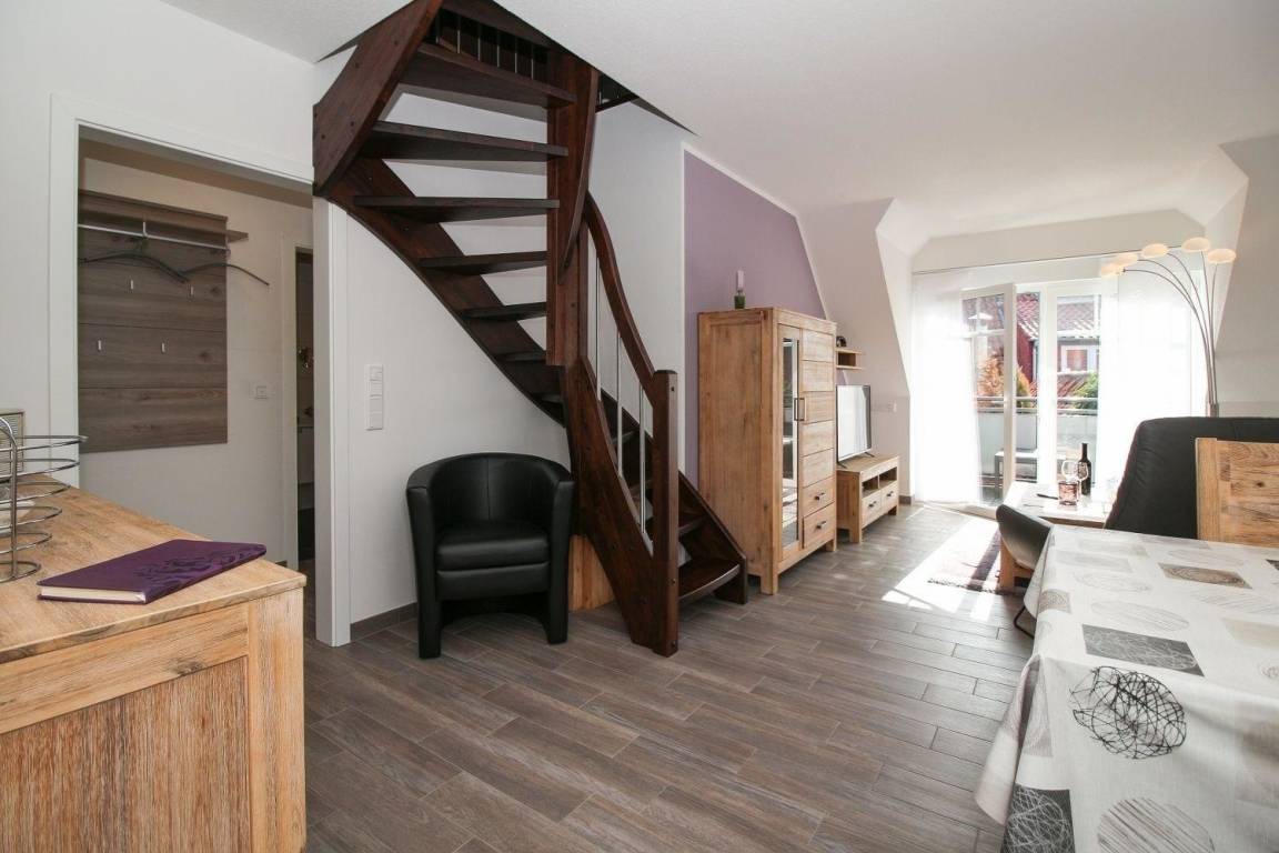 Die Wohnung verfügt über eine komplett eingerichtete, separate Küche mit sämtlichen Elektrogeräten (Spülmaschine, Waschmaschine, Nespresso-/Kaffeepad-/Filterkaffee-Maschine etc.), einem Wohn-/Essbereich, einem Schlafzimmer mit Doppelbett und einem Bad mit ebenerdiger Dusche. Im Dachgeschoss befindet sich ein weiteres Schlafzimmer mit zwei Einzelbetten (je 100x200cm). Außerdem ist ein zweites WC im Dachgeschoss vorhanden.