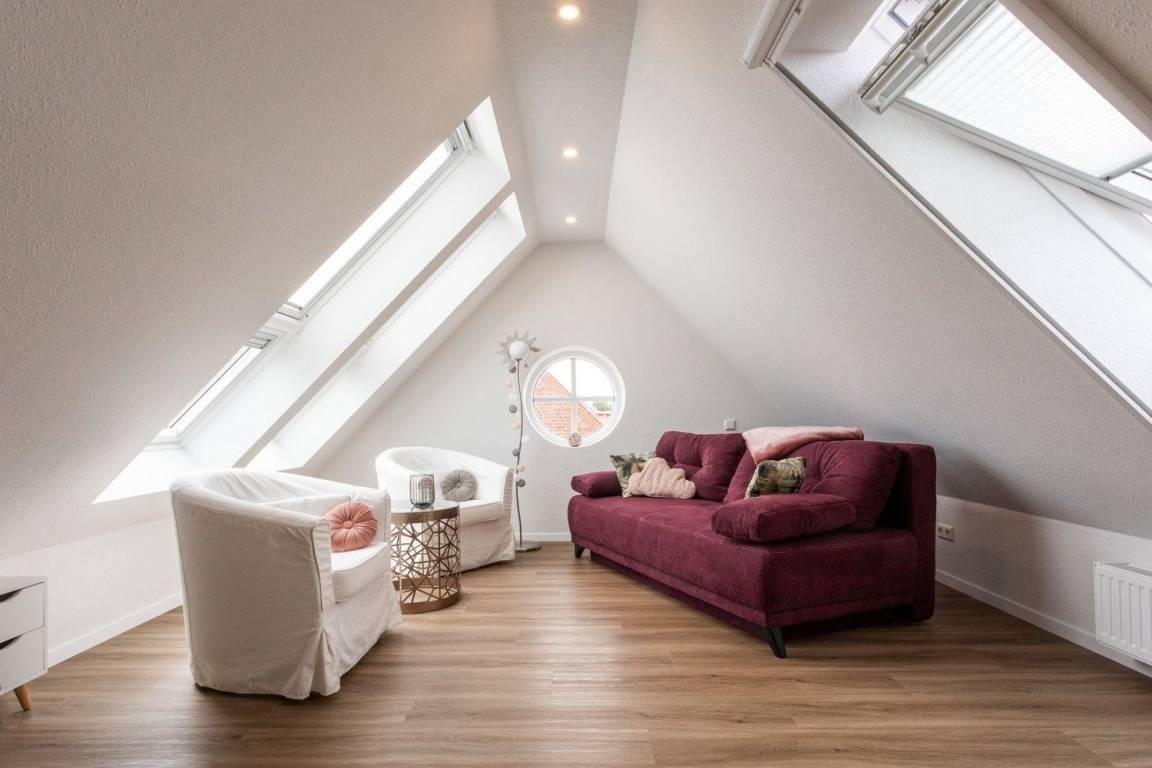 Die Galerie unter dem Dach wird Sie verzaubern. Tauchen Sie ein in das Licht: Übergroße Fenster laden Leser auf das bequeme Sofa ein, herrliche Stunden, ob Sonnenaufgang mit Blick auf die Mühlen oder zur blauen Stunde am Abend.