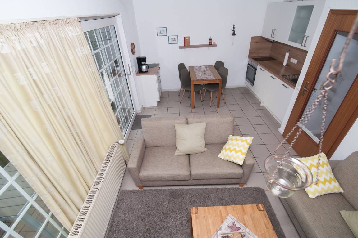 Die "Kleine Brise" ist eine Erdgeschosswohnung mit Terrasse, Gartenmöbeln und 1 PKW Stellplatz.