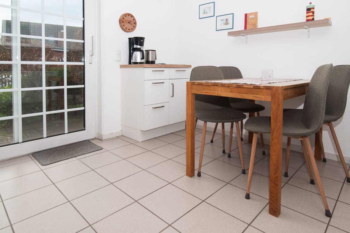Die helle und gemütliche Wohnung hat eine Größe von 53 qm und befindet sich in einer ruhigen Wohnlage in unmittelbarer Deichnähe. Trotz dieser ruhigen Lage ist der Ortskern mit seinen zahlreichen Restaurants, Cafés und dem berühmten Greetsieler Hafen nur wenige Gehminuten entfernt.