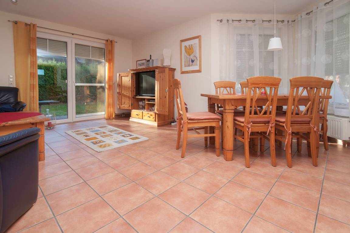 Einbauküche komplett ausgestattet, u.a. Herd mit Cerankochfeld, Dunstabzugshaube, Geschirrspüler, Mikrowelle, Kühlschrank mit Gefrierfach, Filterkaffee + Kaffeepadmaschine, Toaster und vielem mehr. Das Erdgeschoß ist komplett gefliest und verfügt über Fußbodenheizung.