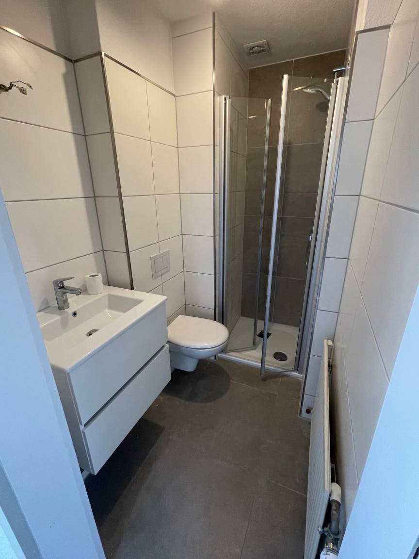 Das neue Duschbad hat einen ganz flachem Einstieg in die Dusche.