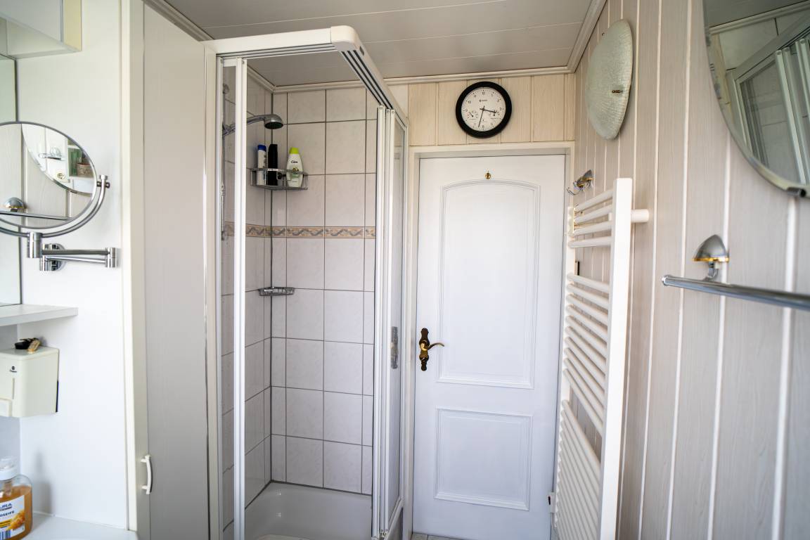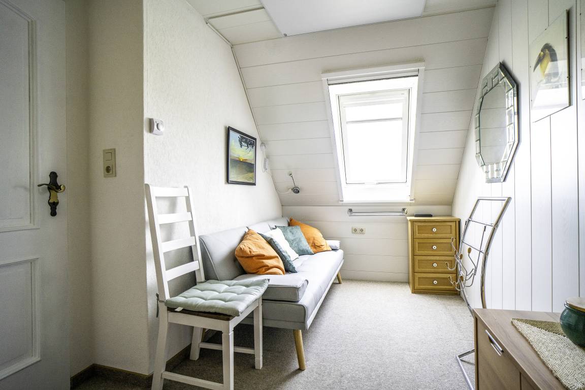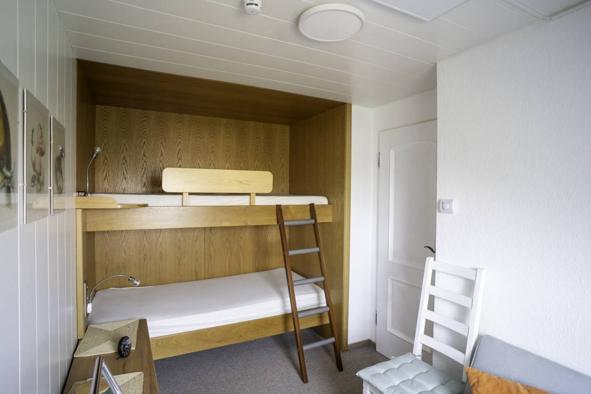 Das Haus relativ liegt nah am Zentrum des sehr malerischen Ortskerns. Alles ist fußläufig zu erreichen. Dabei ist die Lage des Ferienhauses ausgesprochen ruhig. Der eigene Parkplatz liegt direkt am Haus. Das Ferienhaus mit Küche, Bad und drei Zimmern, davon zwei Schlafzimmer, verfügt zudem über eine Terrasse und zwei Abstellräume. Das ehemalige, innenliegende Treppenhaus wurde durch einen Treppenhausanbau ersetzt und die Fläche den Wohnräumen zugeteilt. Somit vergrößerte sich im Erdgeschoss das Ess-/ Wohnzimmer und im Obergeschoss wurden zwei übereinanderliegende Kojen mit vollwertigen Betten eingebaut. Über dem Sofa und im Treppenhausturm hängen ein maritimes Werk und traditionelle Landschaftsbilder eines Emder Künstlers. Insbesondere das Wohn- und Esszimmer wurde im friesischen Stil eingerichtet.