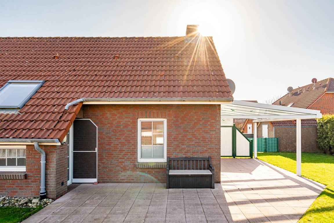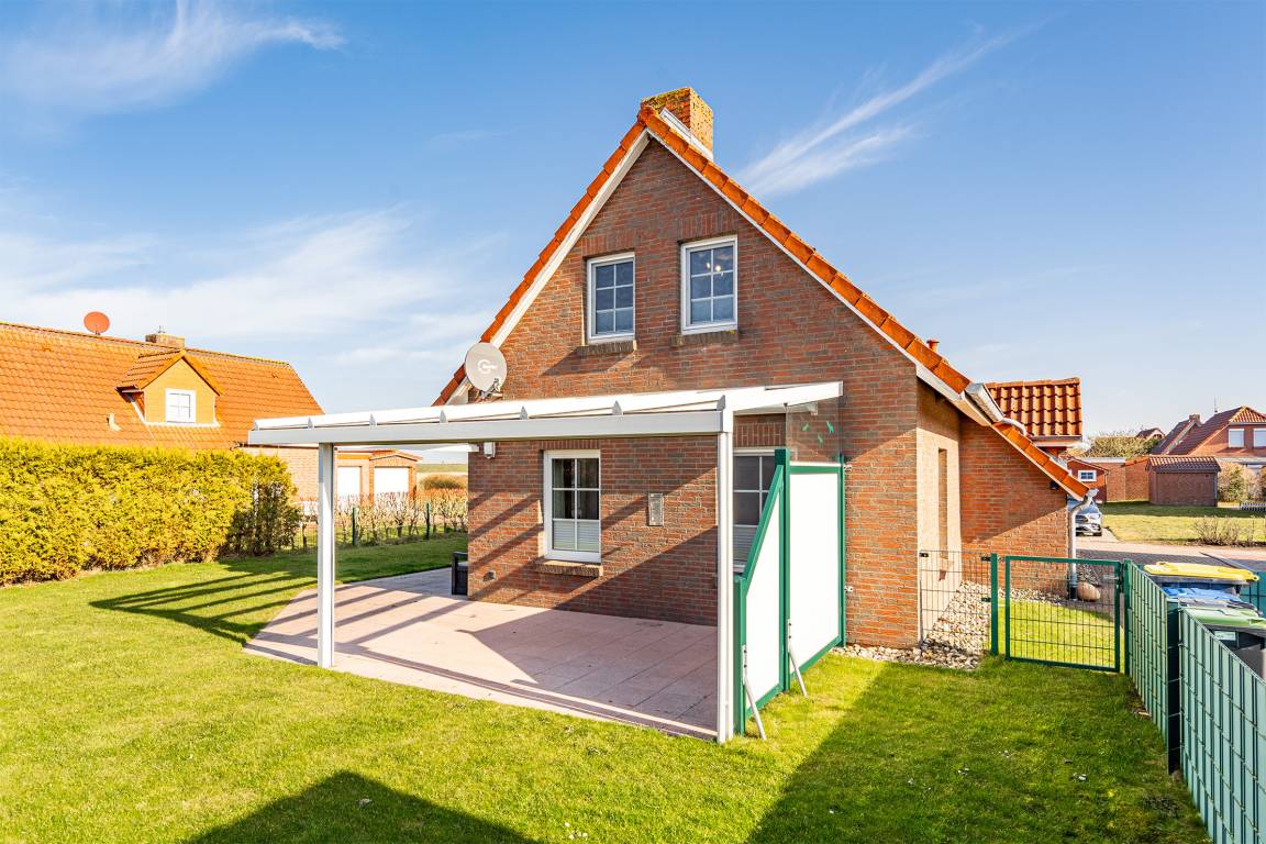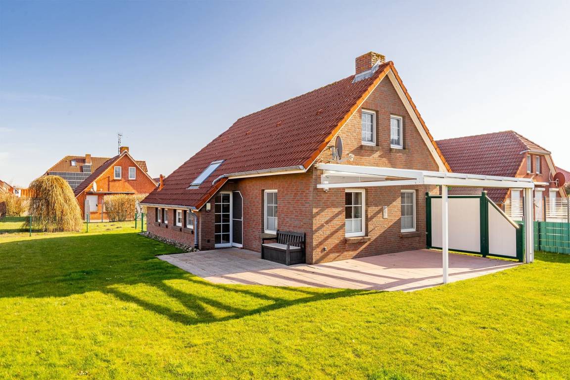 Das Ferienhaus "Skipper" erwartet Sie mit 105qm als traumhaftes, helles und gemütliches Feriendomizil mit viel Platz und Komfort für den gemeinsamen Urlaub mit der Familie oder Freunden. Der Wohnbereich mit großer Sofalandschaft und Kamin verspricht behagliche Abende bei knisterndem Feuer. Die separate und voll ausgestattete Küche mit Fußbodenheizung, der helle und geräumige Essbereich, das Schlafzimmer mit Doppelbett sowie das Tageslichtbad mit ebenerdiger Dusche und Fußbodenheizung runden die Ausstattung im Erdgeschoss ab. Im Obergeschoss bietet das Haus ein weiteres Schlafzimmer mit zwei Einzelbetten, ein zweites Tageslichtbad sowie einen Relax-Raum, in dem es sich in gemütlichen Sesseln bei einem guten Film entspannen lässt. Das ganze Haus überzeugt durch großzügige und helle Räume. Ein absolutes Highlight ist der weitläufige, eingezäunte Garten mit einer überdachten Terrasse und elektrischen Markise – ideal für laue Sommerabende mit einem Glas Wein oder frischer Nordseeluft bei einer heißen Tasse Tee. Hier kommt jeder auf seine Kosten, egal ob Kinder oder Ihr Vierbeiner. Auch die beiden vorhandenen PKW-Stellplätze und die ruhige Lage in einer Sackgasse unweit des Greetsieler Hafens machen das Haus zu einem idealen Rückzugsort für die gemeinsame Zeit mit Freunden oder der Familie.