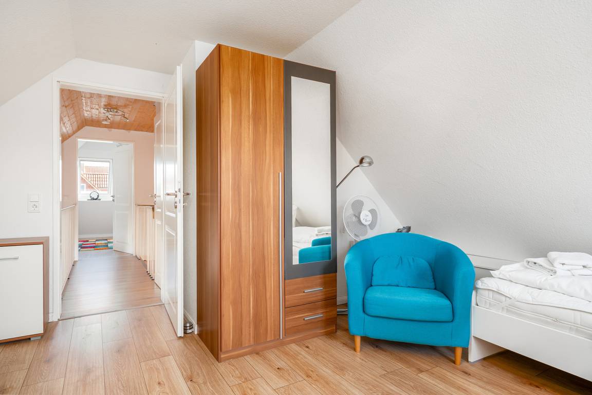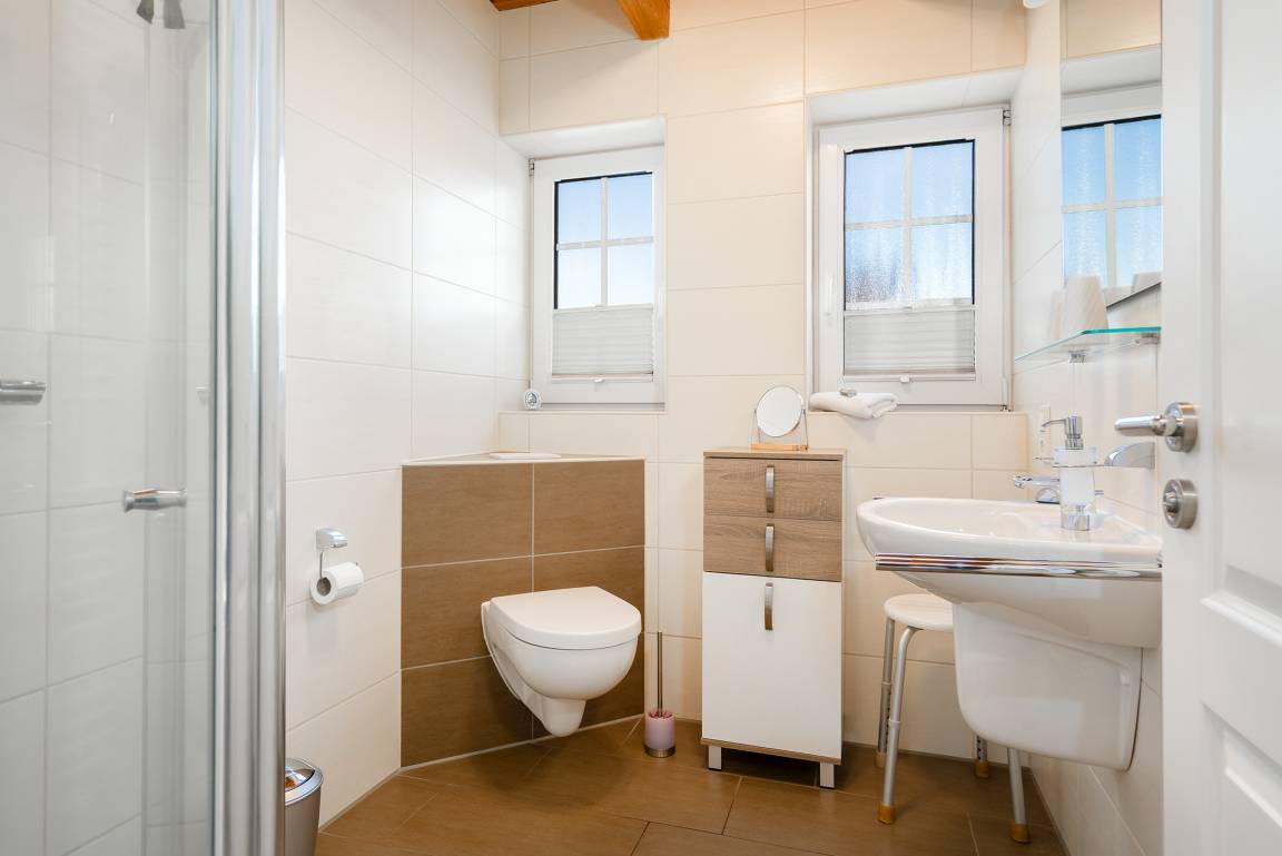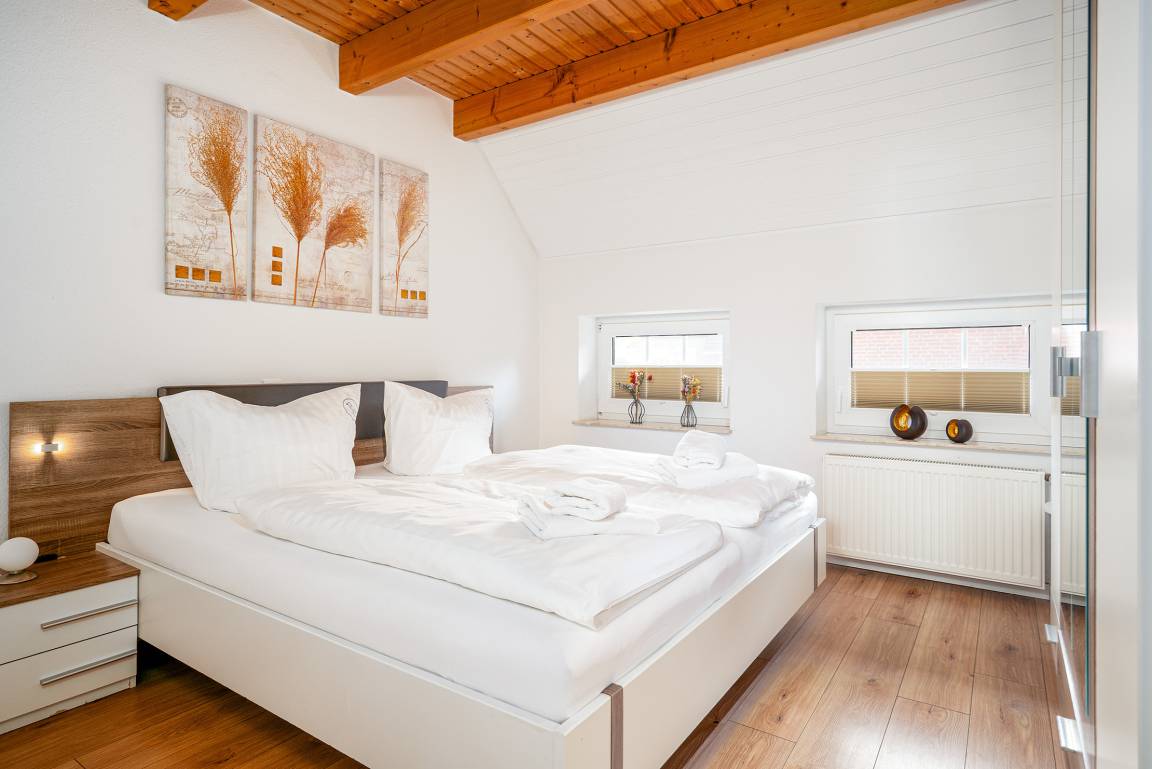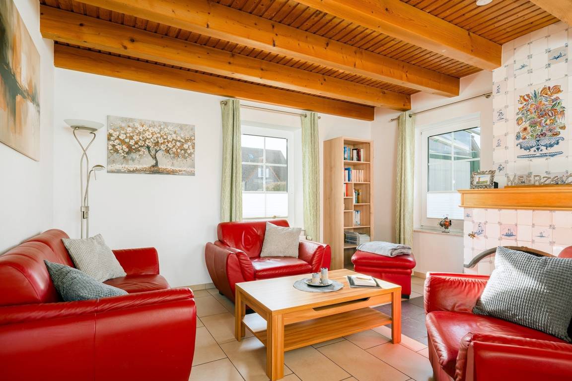 Das Ferienhaus "Skipper" erwartet Sie mit 105qm als traumhaftes, helles und gemütliches Feriendomizil mit viel Platz und Komfort für den gemeinsamen Urlaub mit der Familie oder Freunden. Der Wohnbereich mit großer Sofalandschaft und Kamin verspricht behagliche Abende bei knisterndem Feuer. Die separate und voll ausgestattete Küche mit Fußbodenheizung, der helle und geräumige Essbereich, das Schlafzimmer mit Doppelbett sowie das Tageslichtbad mit ebenerdiger Dusche und Fußbodenheizung runden die Ausstattung im Erdgeschoss ab. Im Obergeschoss bietet das Haus ein weiteres Schlafzimmer mit zwei Einzelbetten, ein zweites Tageslichtbad sowie einen Relax-Raum, in dem es sich in gemütlichen Sesseln bei einem guten Film entspannen lässt. Das ganze Haus überzeugt durch großzügige und helle Räume. Ein absolutes Highlight ist der weitläufige, eingezäunte Garten mit einer überdachten Terrasse und elektrischen Markise – ideal für laue Sommerabende mit einem Glas Wein oder frischer Nordseeluft bei einer heißen Tasse Tee. Hier kommt jeder auf seine Kosten, egal ob Kinder oder Ihr Vierbeiner. Auch die beiden vorhandenen PKW-Stellplätze und die ruhige Lage in einer Sackgasse unweit des Greetsieler Hafens machen das Haus zu einem idealen Rückzugsort für die gemeinsame Zeit mit Freunden oder der Familie.