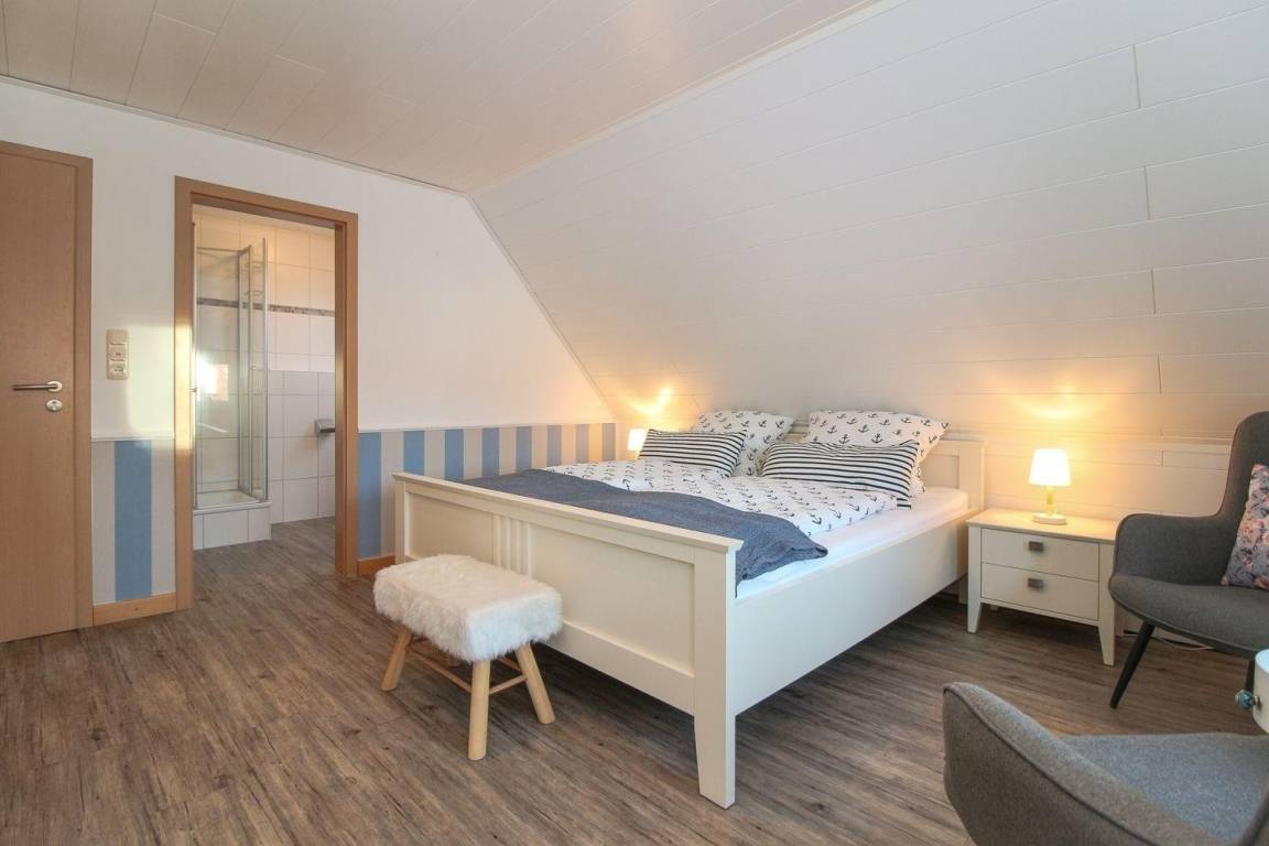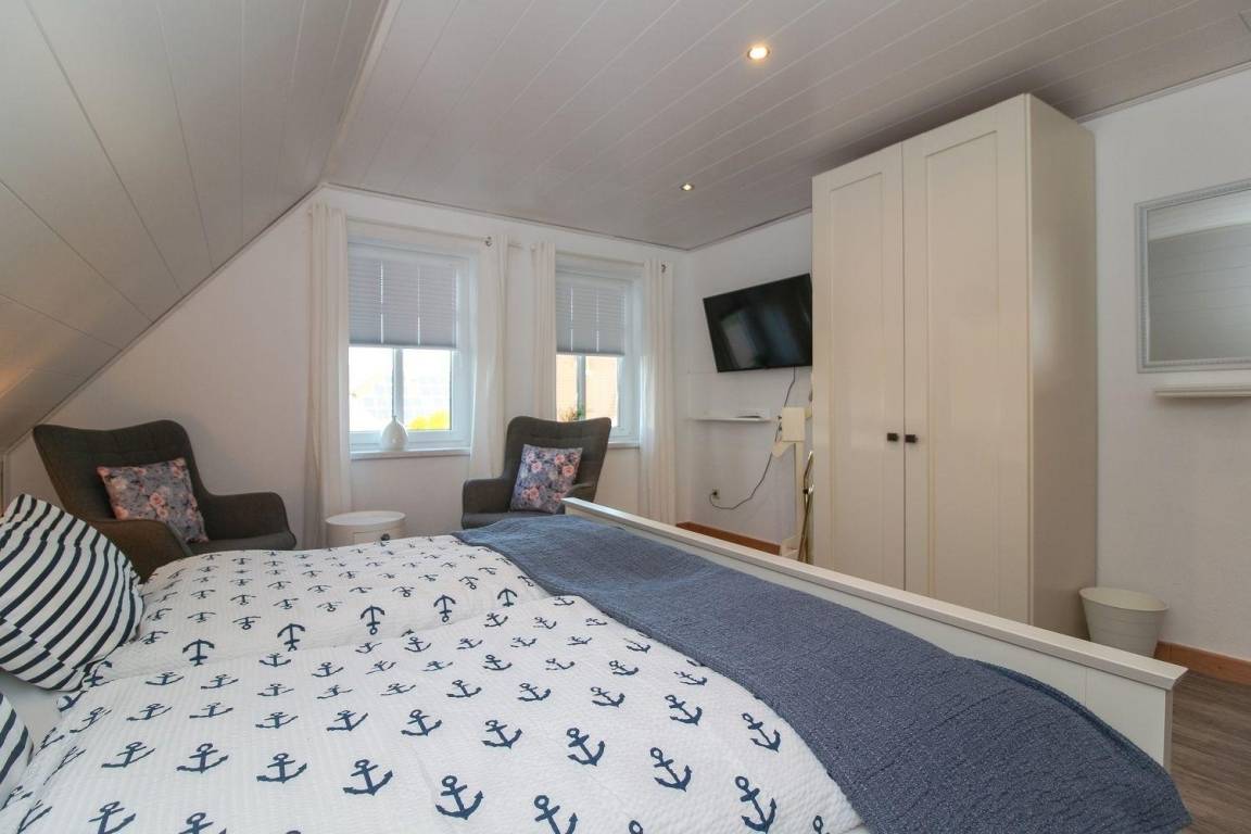 Unser Zimmer 4 (Kutter) befindet sich im Obergeschoss und ist für Gäste mit einem kleinen Hund geeignet.