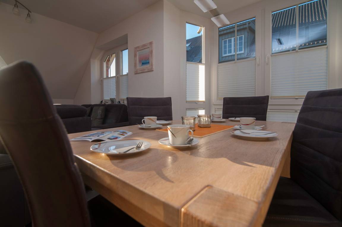 Die Wohnung befindet sich im Obergeschoss und erstreckt sich über 2 Ebenen auf 70 qm und bietet Platz für 2-4 Personen. Sie ist modern und komfortabel eingerichtet und lädt zum Entspannen ein. Dank ihrer bevorzugten Lage gelangen Sie in nur 5 Gehminuten in den Ortskern und können auch kleine und große Sehenswürdigkeiten bequem zu Fuß oder mit dem Fahrrad an der frischen Seeluft erreichen.