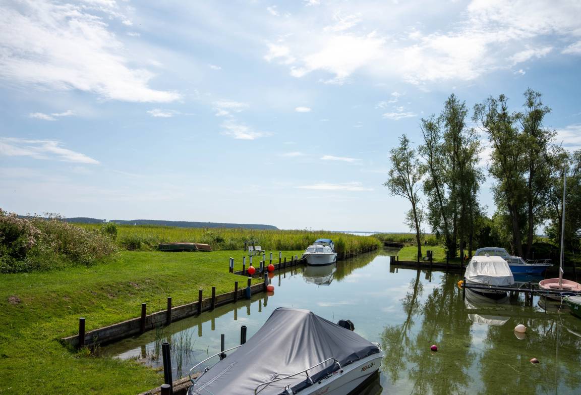 Der Bungalow Haffblick befindet sich in ruhiger Lage, nur ca. 100 m vom Achterwasser entfernt. Er liegt in einer Bungalowsiedlung auf einem eigenen Grundstück und eignet sich ideal für Familien, Paare und Naturliebhaber.