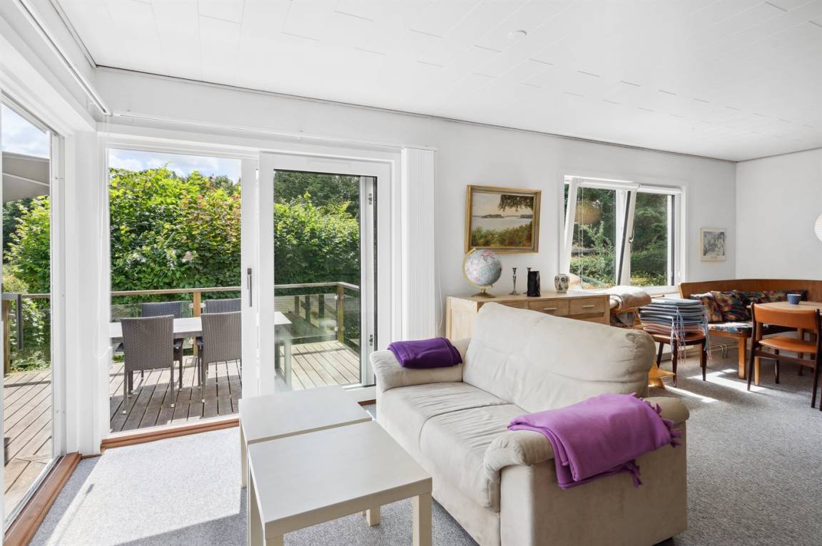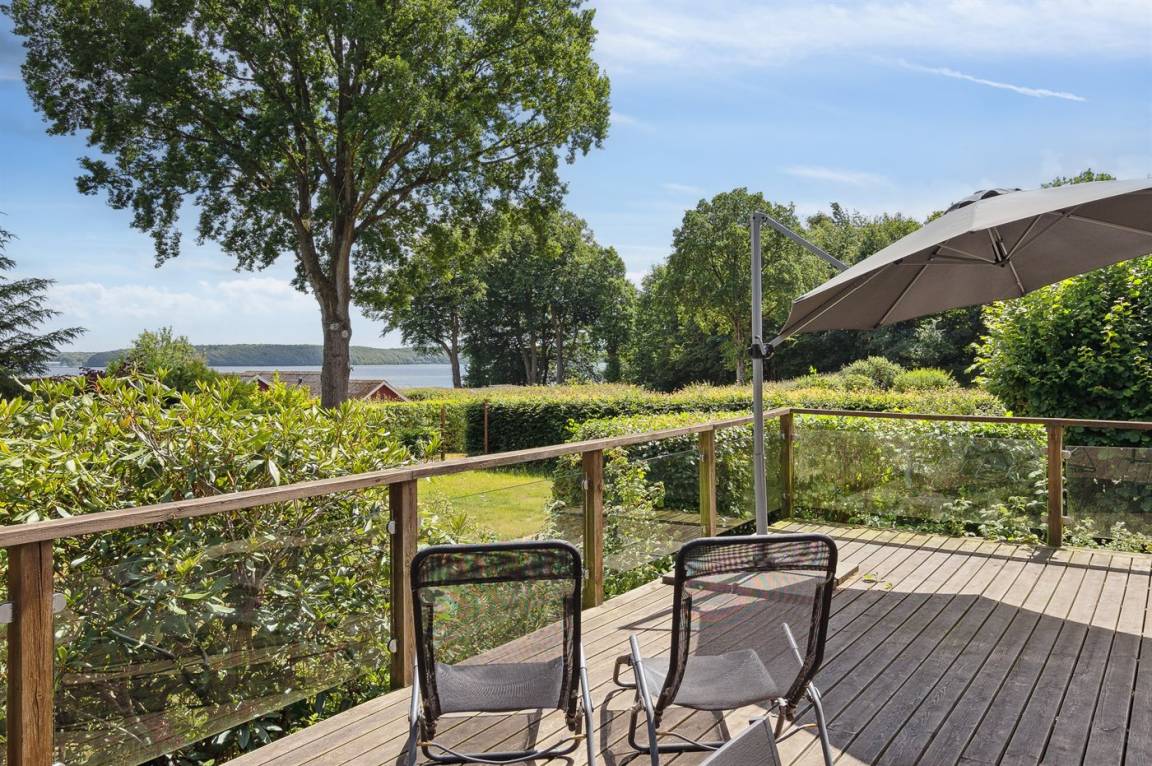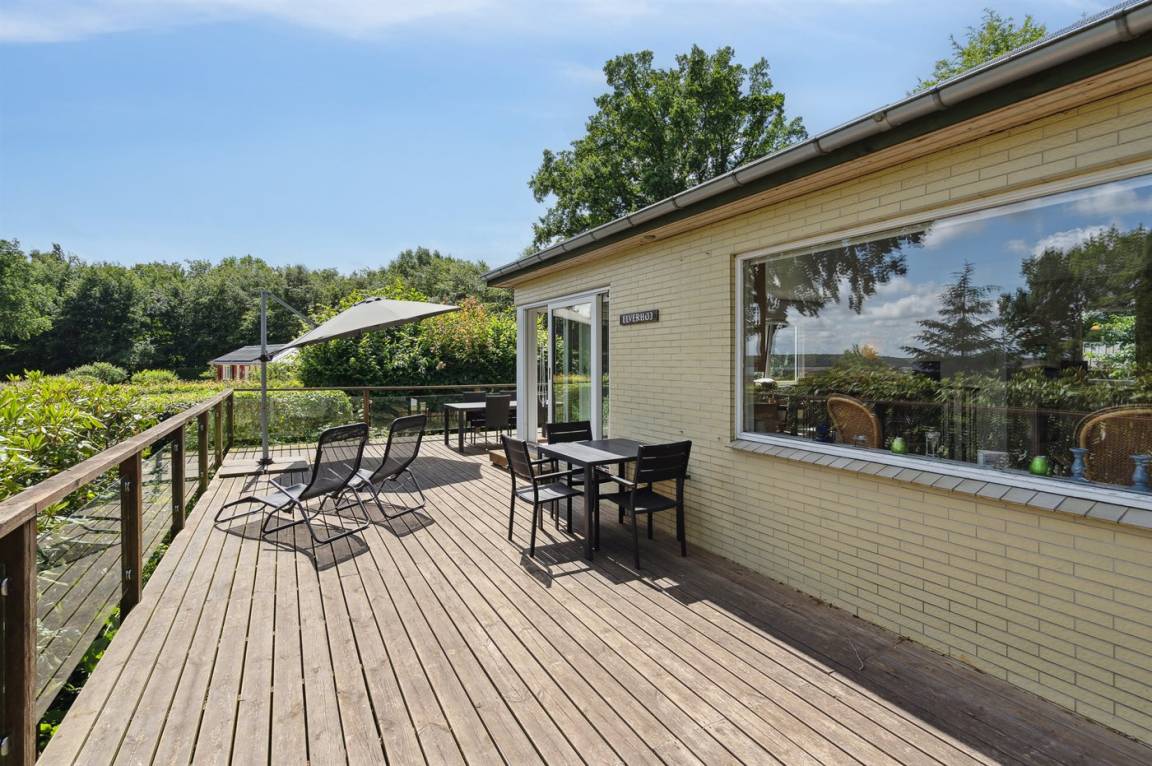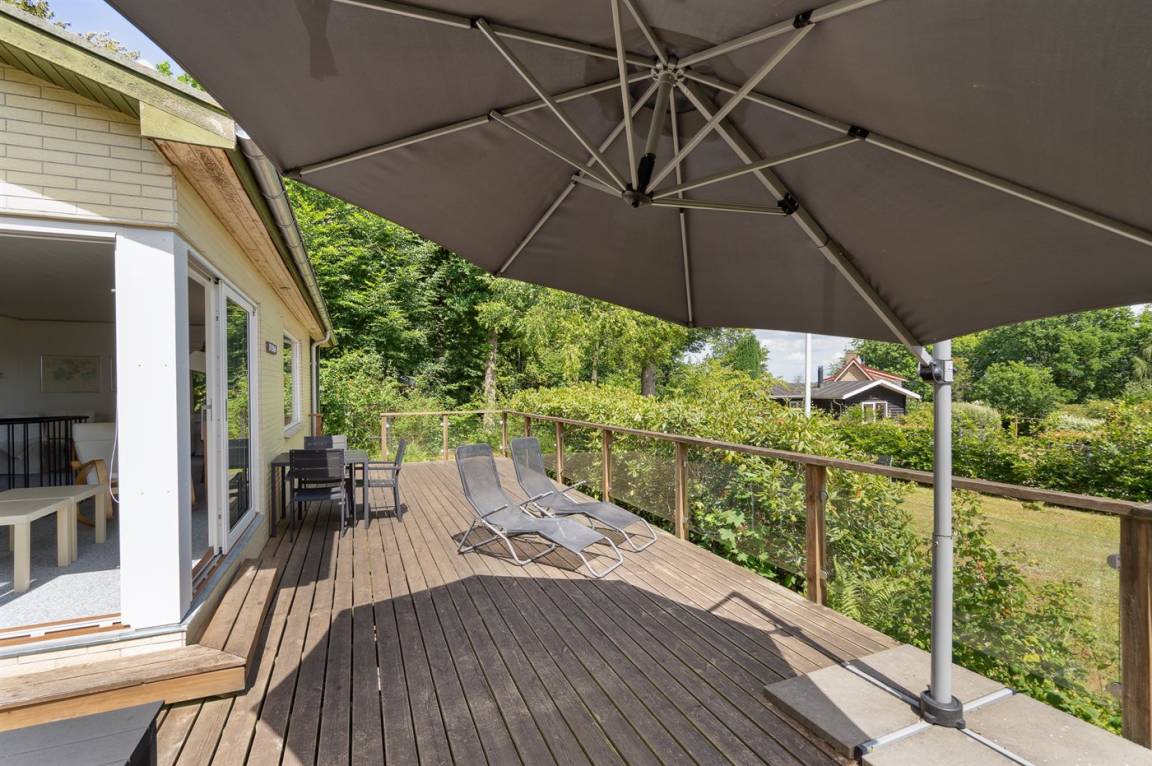 Dieses Ferienhaus mit Meeresblick und eine wirklich schöne Terrasse liegt in einem ruhigen und beliebten Feriengebiet.