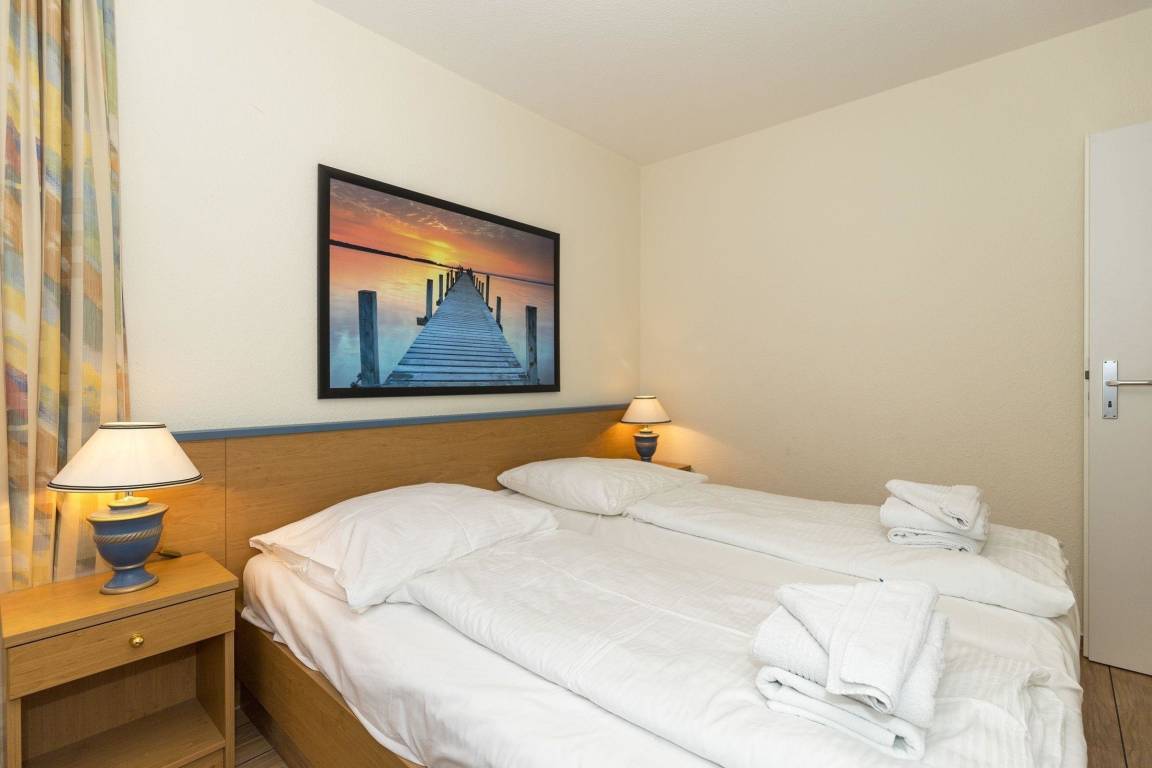Im zweiten Schlafzimmer befindet sich ein Doppelbett (1,40 m breit), ein Kleiderschrank sowie ein zweites Fernsehgerät.