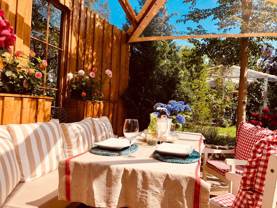 In unserer Ferienwohnung "Strandlust" erwartet Sie ein Kaminzimmer mit Kuschelecke, eine komplett eingerichtete Wohnküche mit einem großen Familientisch mit Blick und direktem Zugang in den Garten auf Ihre Strandlust-Terrasse. Diese lädt Sie im Sommer zum Frühstücken sowie Grillen und geschützt im Winter zum Glühwein trinken ein.