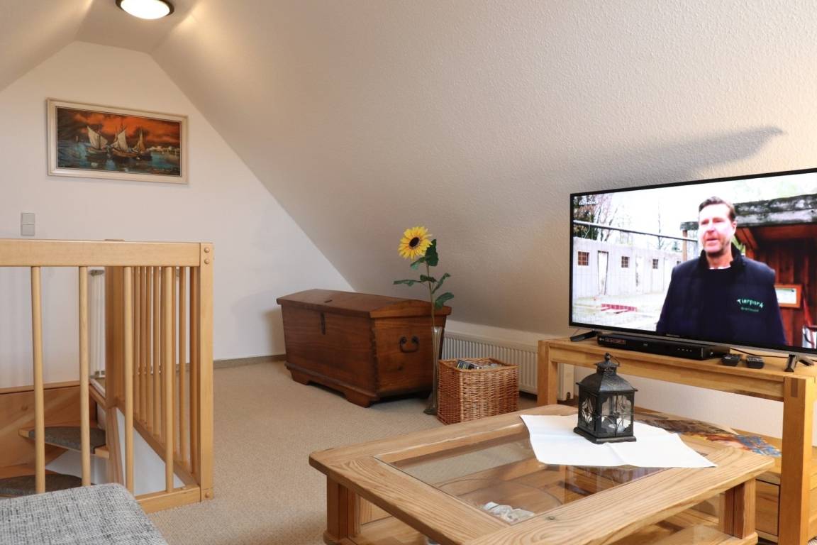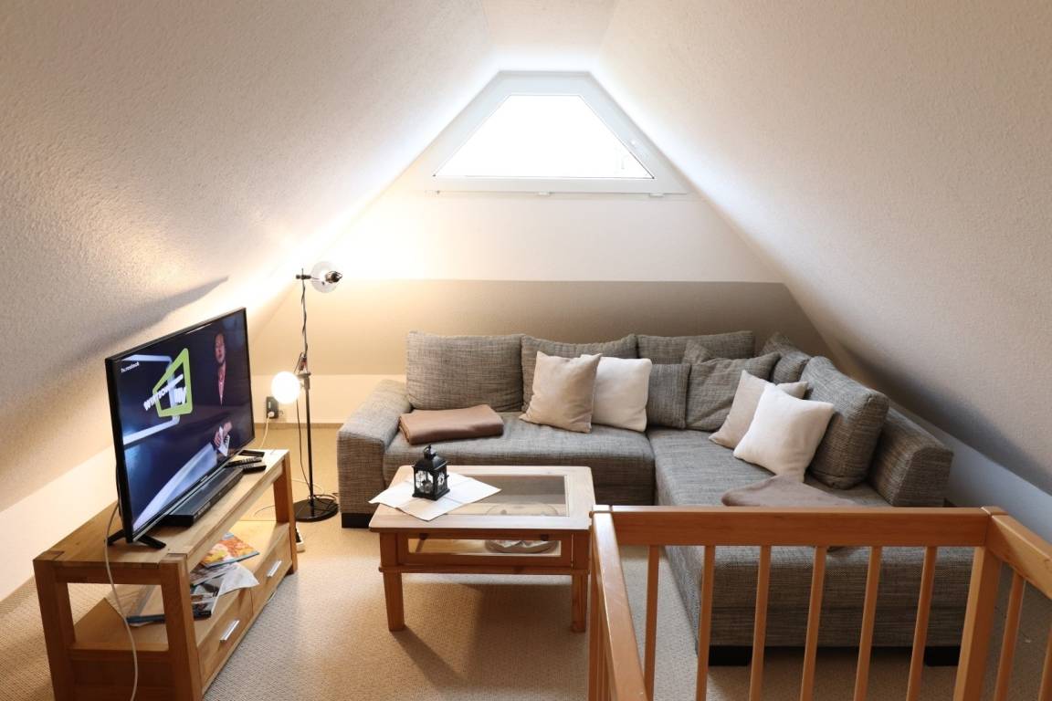 Ein zusätzliches Highlight in dieser Ferienwohnung ist das Galleriezimmer. Hier können Sie sich gemütlich zurückziehen oder mit der ganzen Familie Brettspiel-Abende veranstalten.