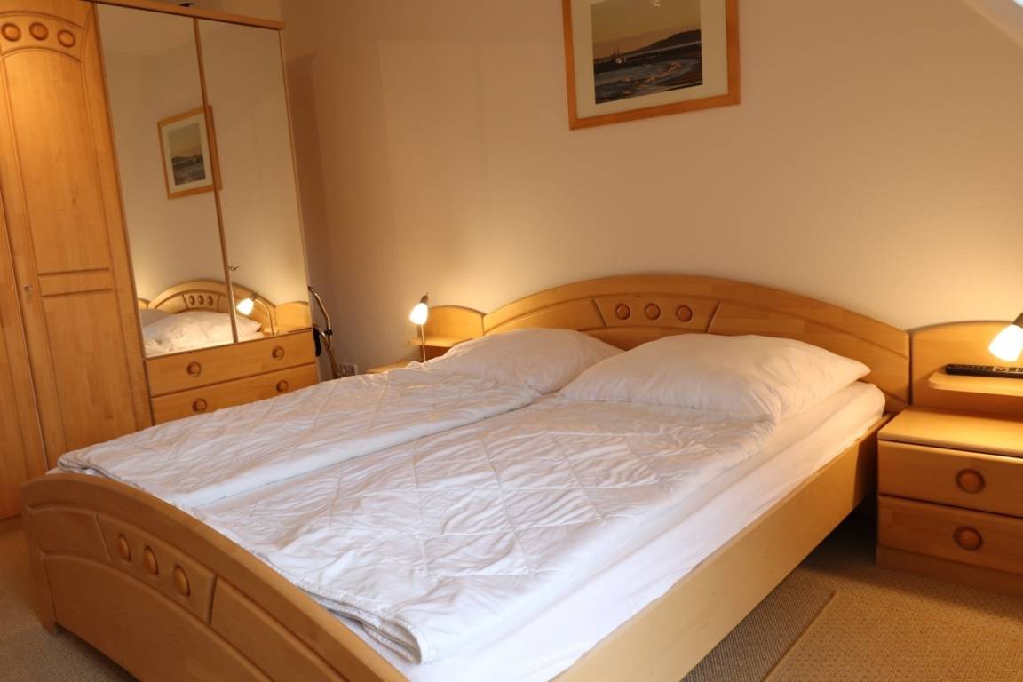 Die großzügig geschnittene Wohnung ist komfortabel ausgestattet und bietet optimale Urlaubsbedingungen - 3,5 Zimmer auf 65m² im Obergeschoss, für 4 Personen mit zwei Schlafzimmern, eines mit Doppelbett und eines mit einem Einzelbett zum ausziehen, so dass auch hier 2 Personen komfortabel schlafen können.