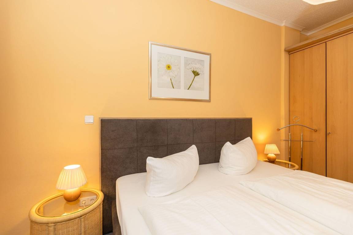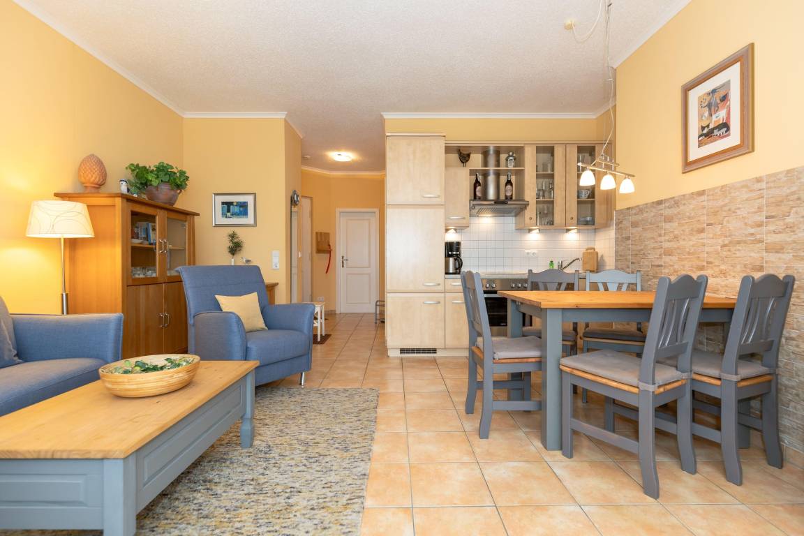 Die komfortable 3-Zimmer-Wohnung mit 55 m² Wohnfläche für bis zu 4 Personen befindet sich im Erdgeschoss des beliebten Hauses "Atlantik" an der Nordseite mit Blick auf Promenade, Seebrücke und Meer.