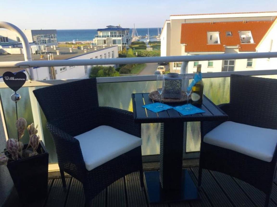 An Ihre Wohnung grenzt ein Balkon zur Nordseite, dieser ist mit modernen Balkonmöbeln ausgestattet und lädt zum gemütlichen Verweilen ein. Beim großartigen Blick auf die Ostsee können Sie hier die Seele baumeln lassen und den Alltagsstress schnell vergessen.