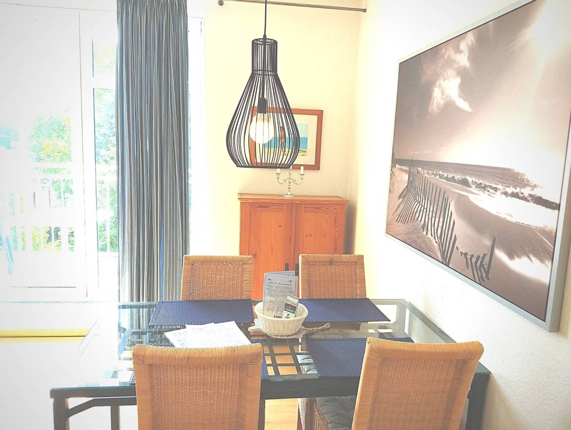 Die Wohnung befindet sich in der historischen Villa Silva (erbaut ca. 1900); durch die für die Bäderarchitektur typischen hohen Decken ist die Wohnung hell und lichtdurchflutet.