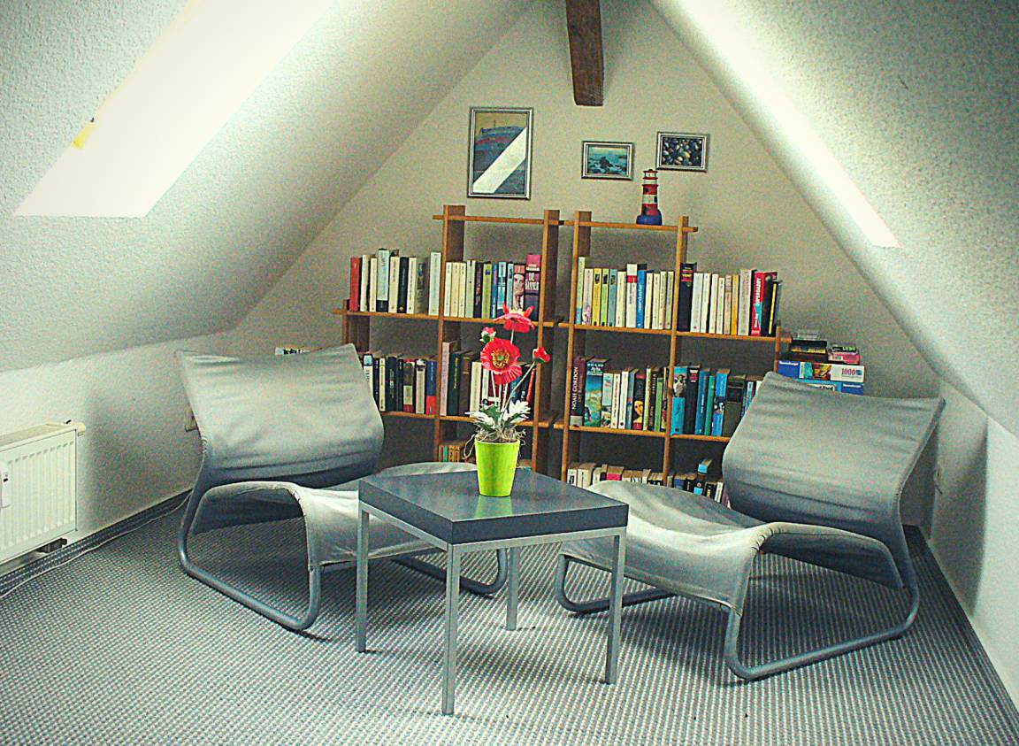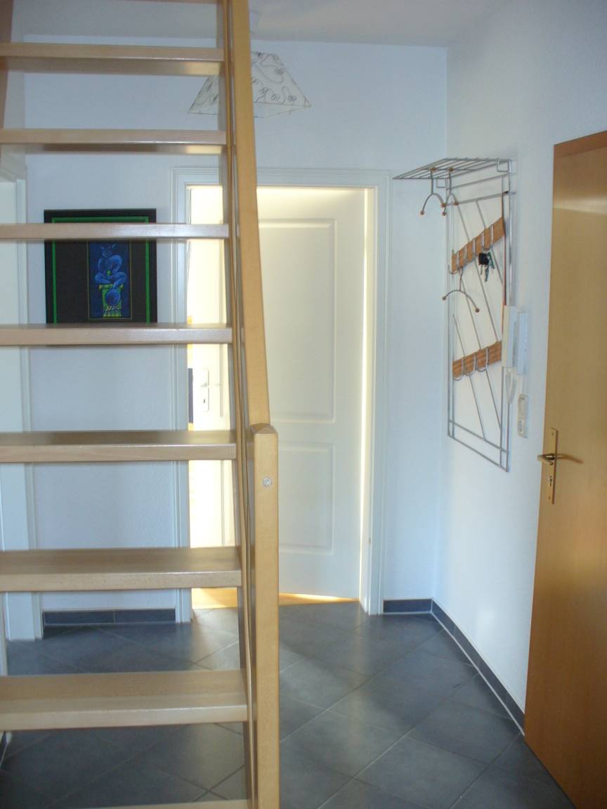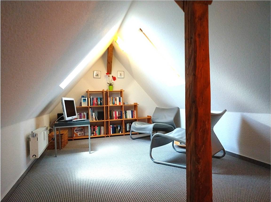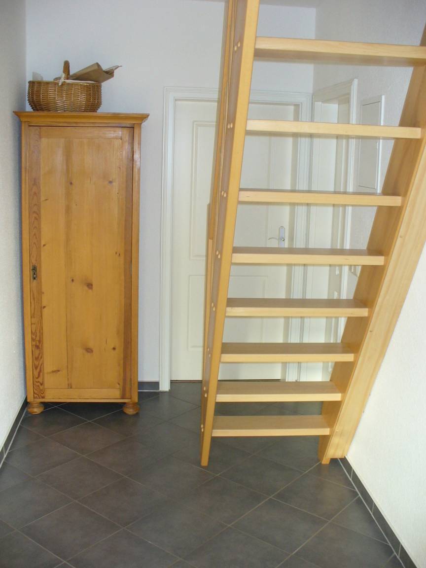 Achtung: Die Treppe ins Dachgeschoss ist sehr steil und ggf. für alte oder sehr junge Menschen nicht geeignet.