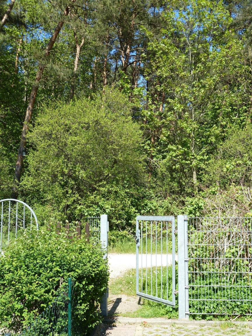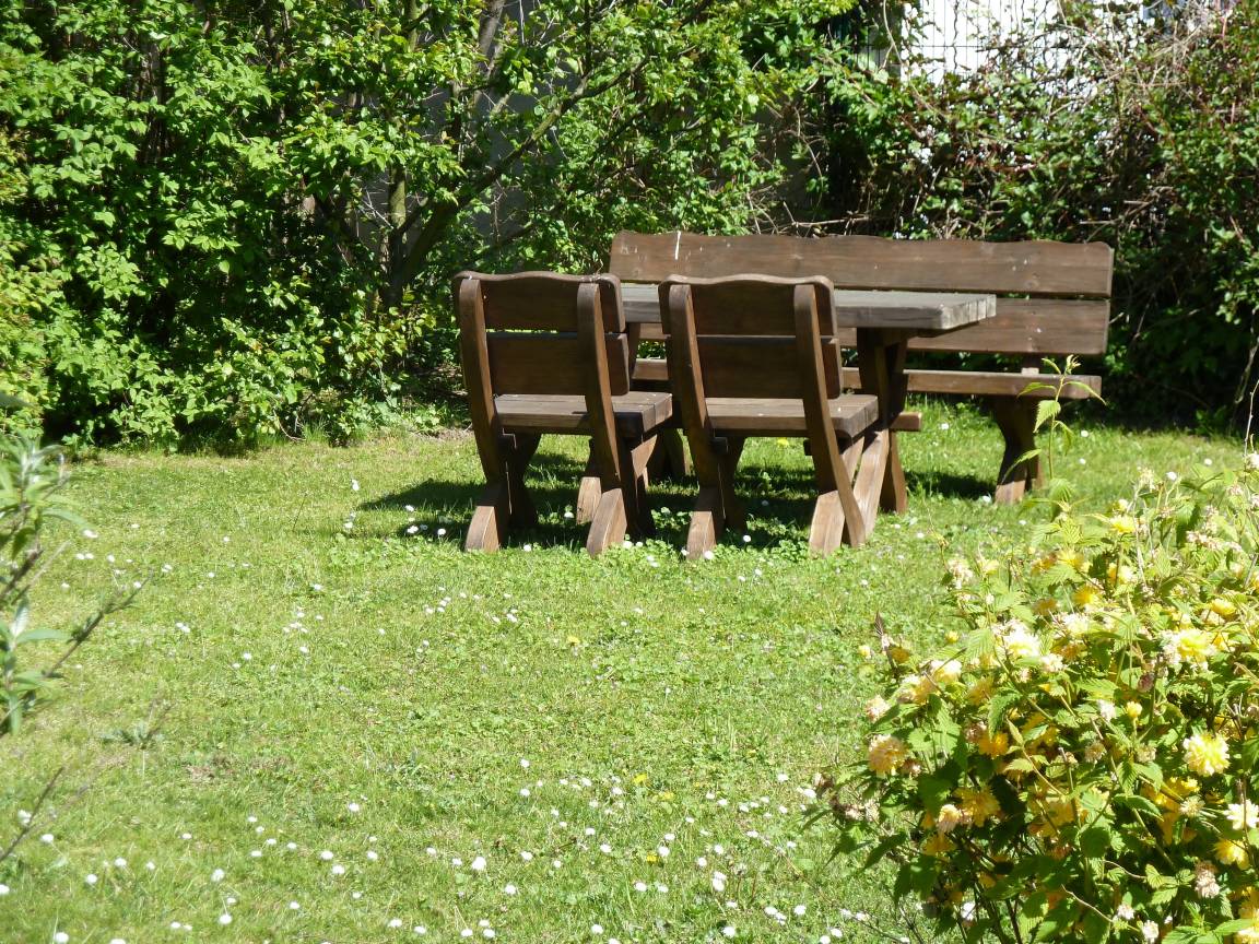 Gartenecke mit Sitzbank (zusätzlich zum eigenen Balkon) im Grundstück mit Blick zum Stadtwald
