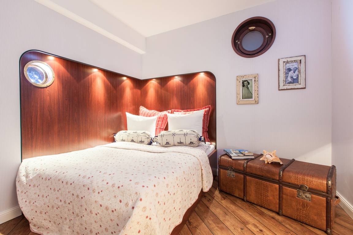 Schlafen wie auf dem Schiff können Sie im rückliegenden sehr ruhigen Schlafzimmer (Bett 160x200) und großem TV -Heimkino.