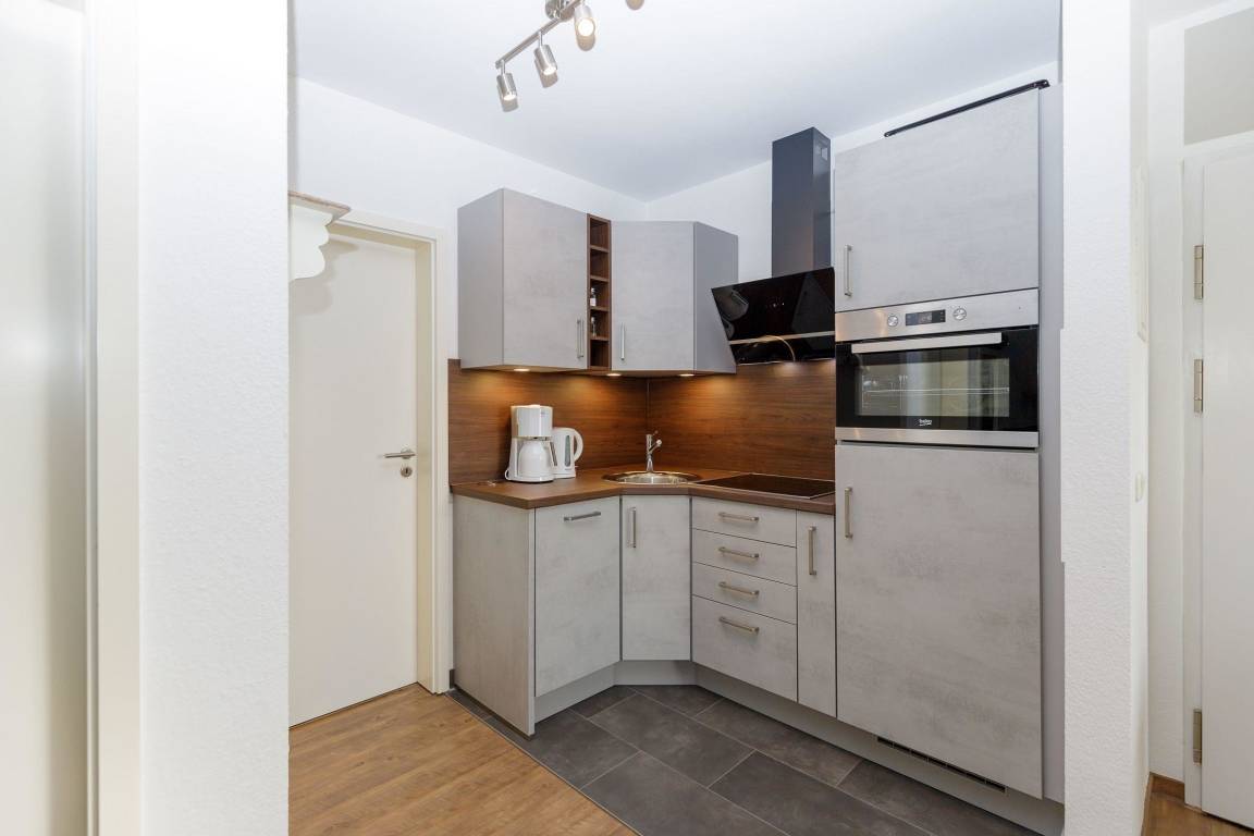 Der angrenzende Essbereich umfasst einen Esstisch mit 4 Stühlen sowie eine offene, voll ausgestattete Küche, in der Sie auf nichts verzichten müssen. Alle Geräte und Küchenutensilien, die in einer modernen Küche nicht fehlen dürfen, sind für die Zubereitung Ihrer Mahlzeiten vorhanden. Hier macht das Kochen sogar im Urlaub Spaß.
