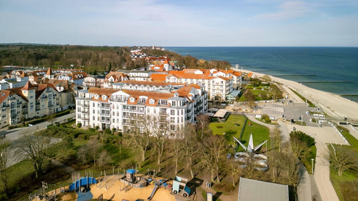 Unser Apartment 1.05 befindet sich in der 1. Etage des Hauses auf der Westseite, vom großen Balkon aus haben Sie einen herrlichen Blick auf die Fußgängerpromenade, die berühmte Seebrücke und die Ostsee.