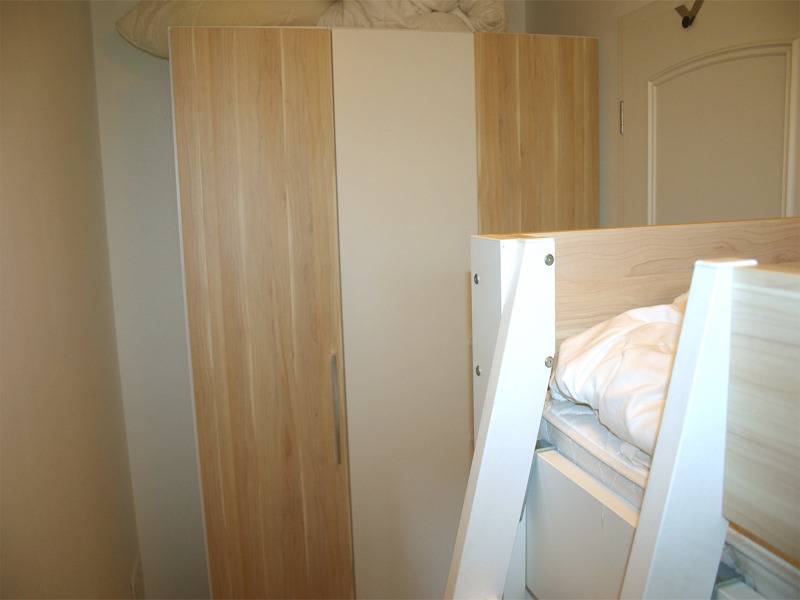 Ein Schlafzimmer verfügt über ein Doppelbett in 1,80 m Breite, das 2. Schlafzimmer bietet ein Etagenbett zum schlafen.