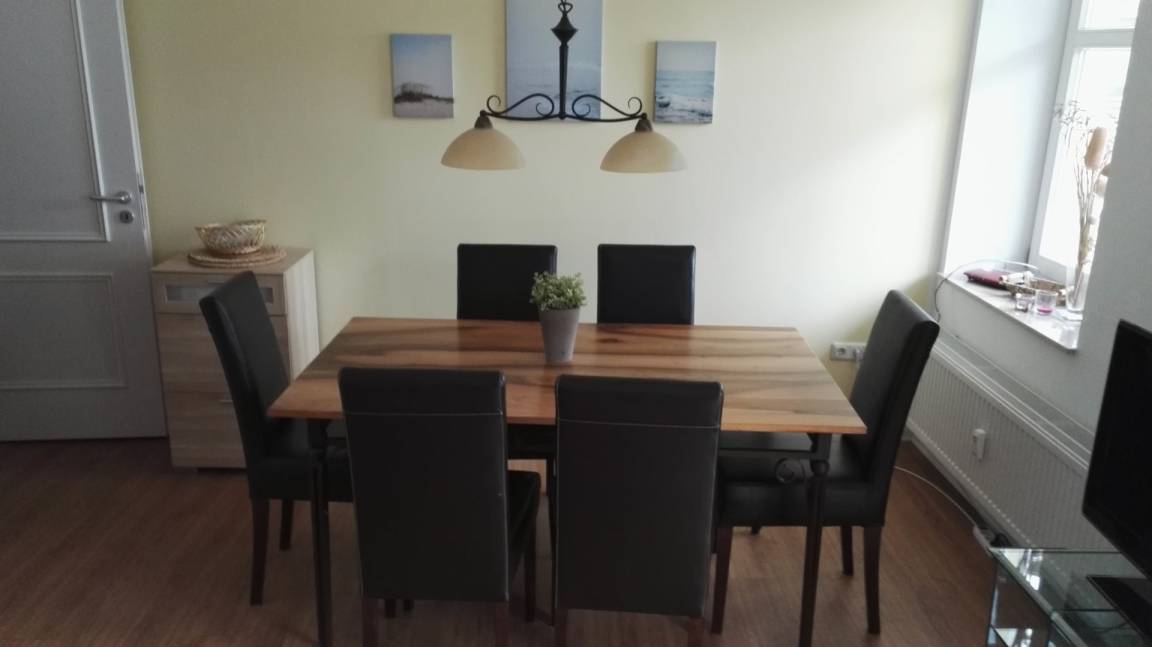 Sie ist komfortabel eingerichtet mit einem Wohnbereich mit einer Eckcouch, Flachbild-TV sowie einer Stereoanlage und DVD-Player. Am Esstisch im Wohnbereich können Sie Ihre Mahlzeiten einnehmen.
