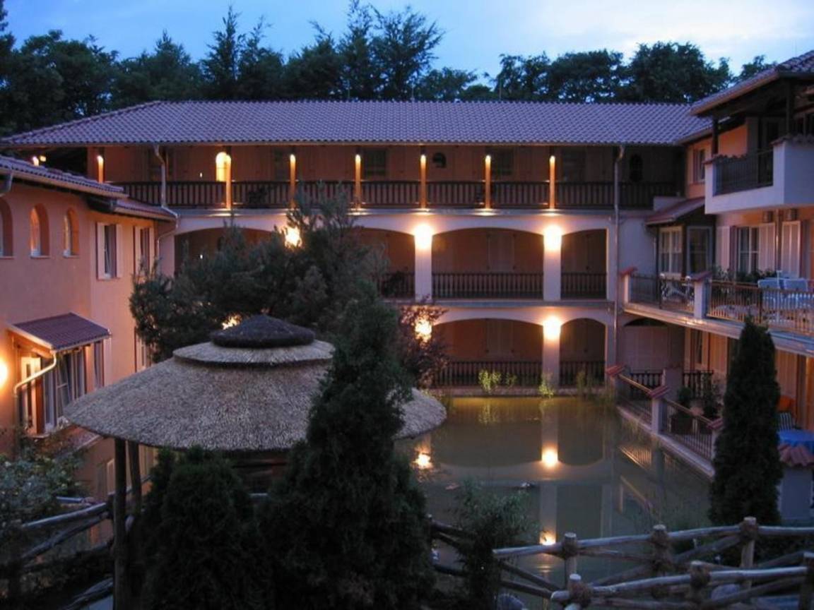 Das Gestaltungskonzept der "Laguna-Residenz" ist der mediterrane Stil mit Säulen, Rundbögen und terrassenförmig angelegtem Innenhof, in dem sich eine attraktive Wasserlandschaft mit üppiger Uferbepflanzung, künstlichen Inseln und kleinen Brücken befindet.