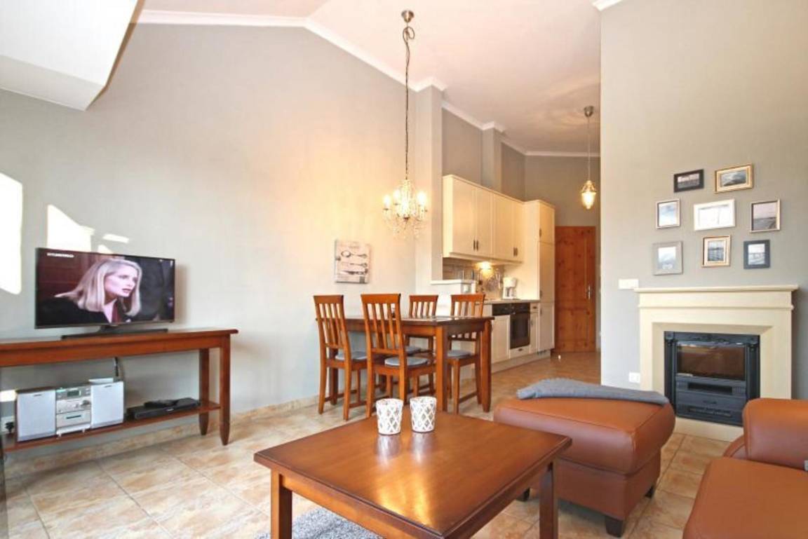 Das Wohnzimmer ist mit einer gemütlichen Couchgarnitur eingerichtet. Zu Ihrem Entertainment finden Sie hier einen Flatscreen-TV und HiFi-Anlage mit CD-Player. Als Highlight befindet sich im Wohnbereich ein elektrischer Kamin, der es auch an kühleren Abenden knistern lässt und für eine wohlige Atmosphäre sorgt.
