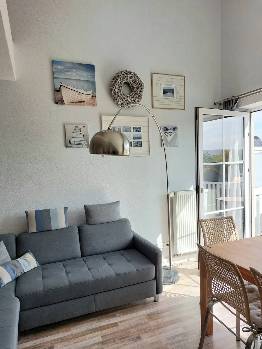Im Wohnzimmer befindet sich ein bequemes Ecksofa um sich von Ihren Ausflüge in Kühlungsborn und Umgebung zu erholen. Sie finden hier einen Flachbildfernseher vor. Der Essbereich ist im Wohnzimmer integriert.