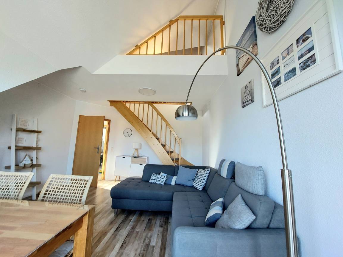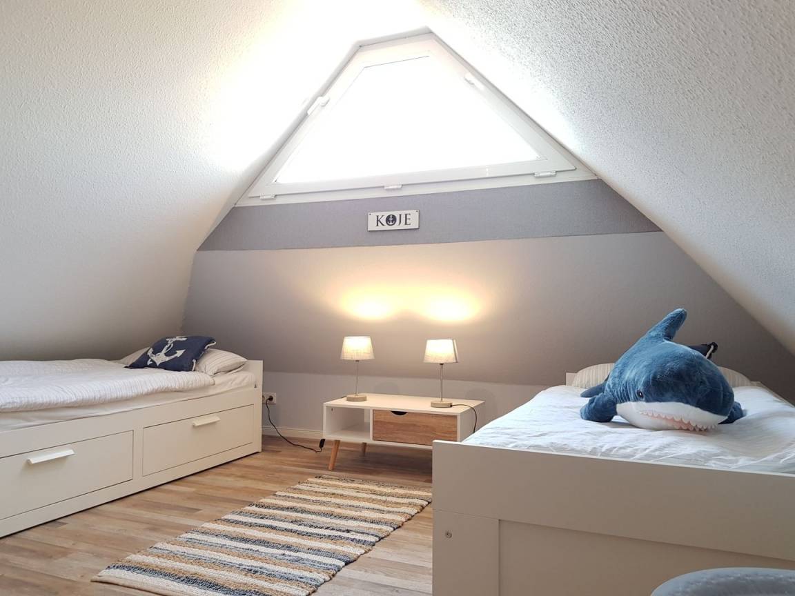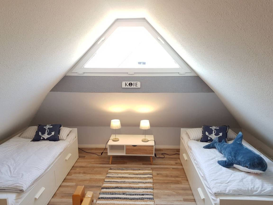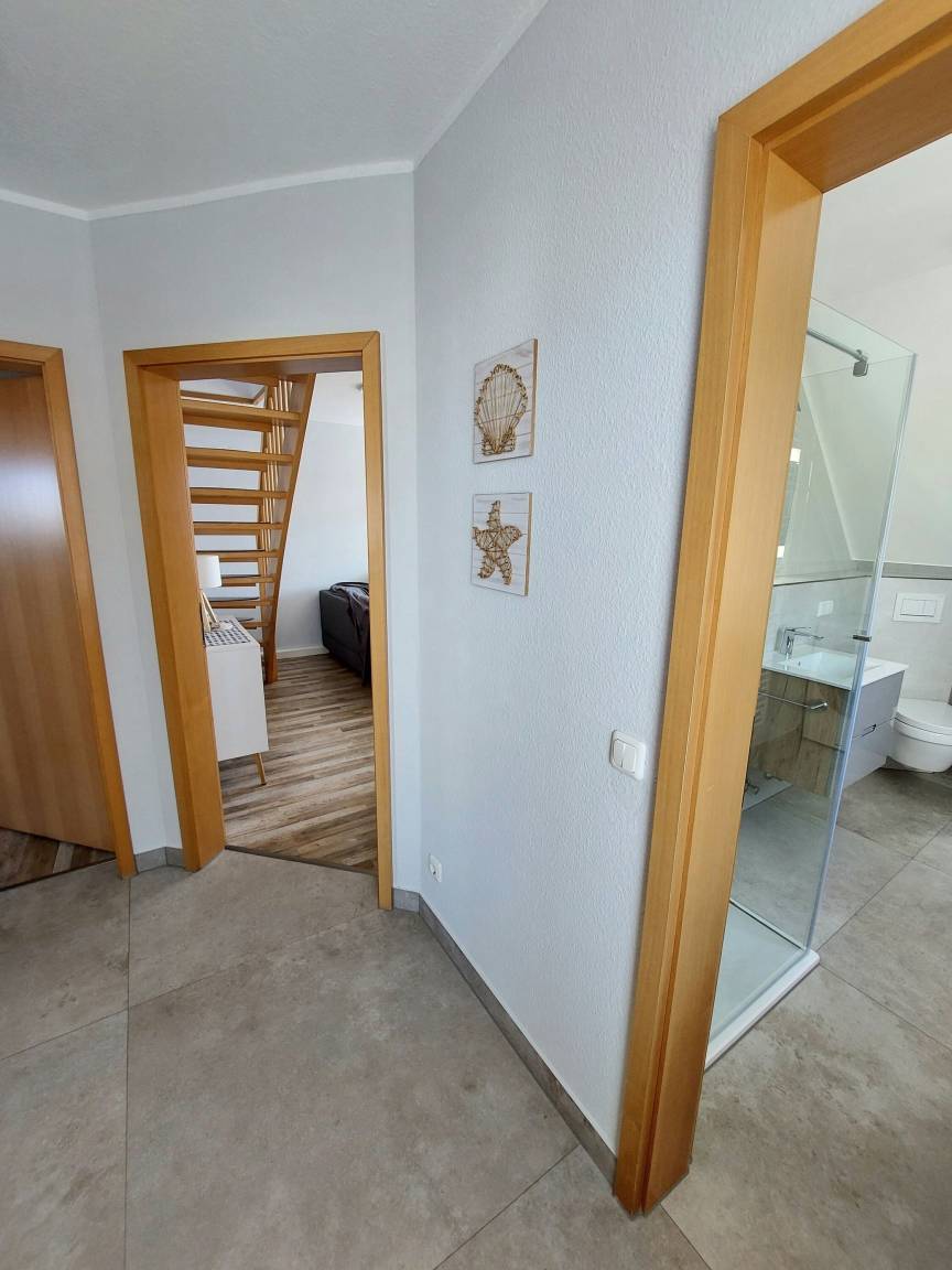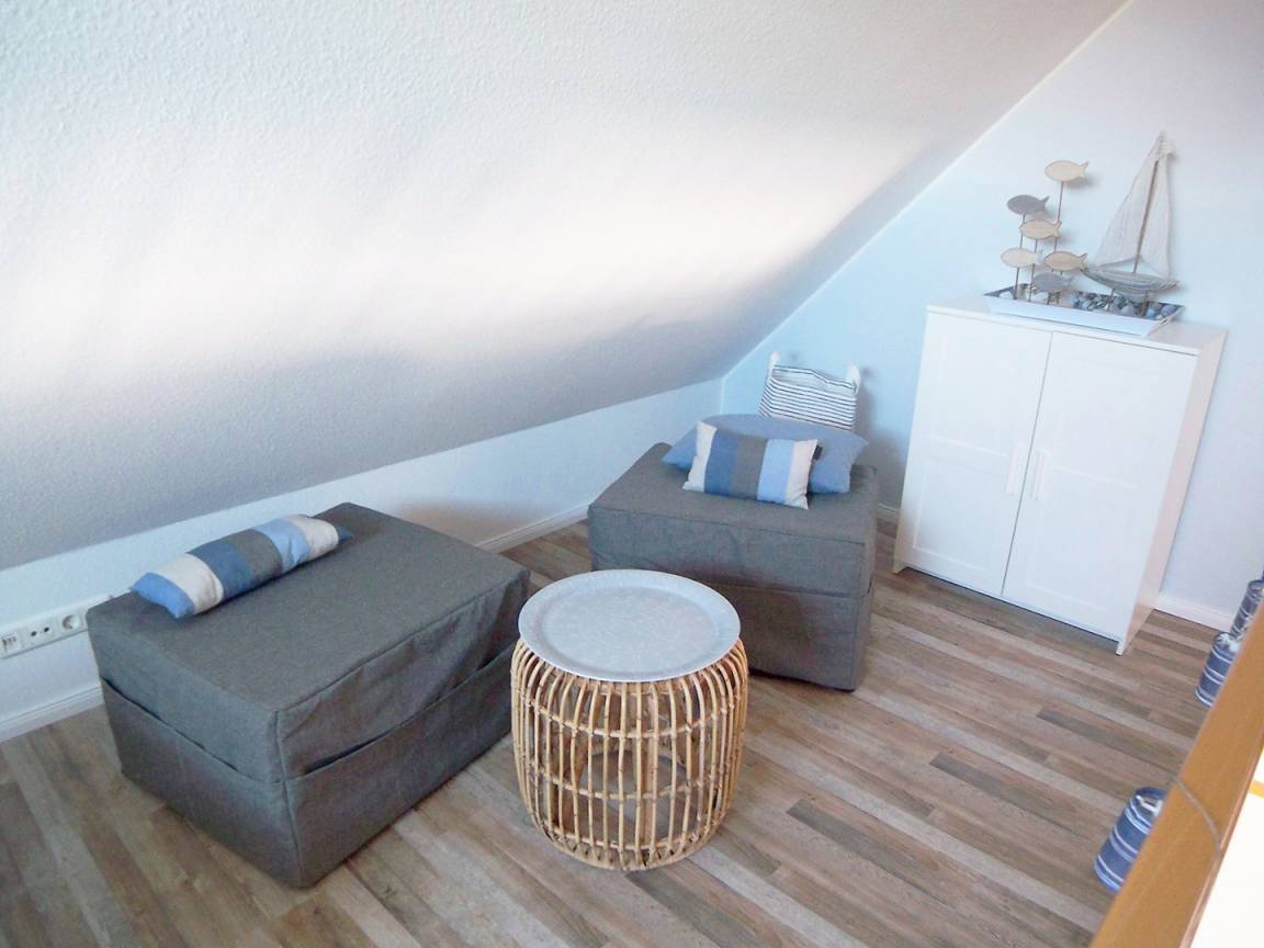 Über die sich im Appartement befindende Treppe, gelangen Sie in das ausgebaute Dachgeschoss, in welchem Sie die dritte und vierte Schlafmöglichkeit in Form von zwei Einzelbetten vorfinden.