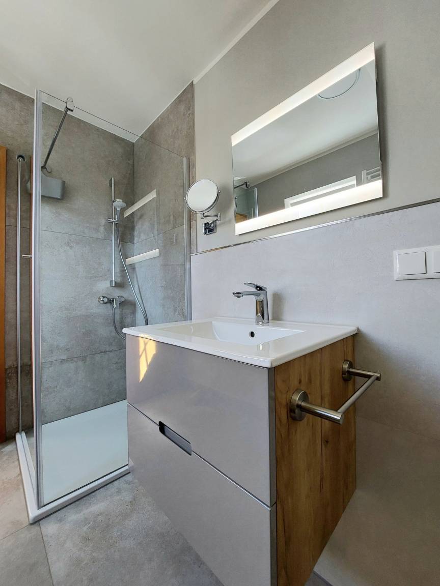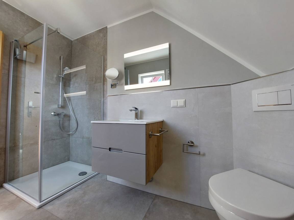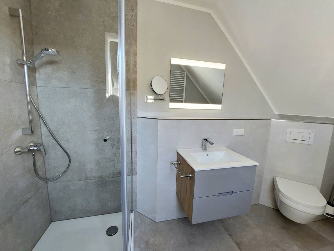Im Duschbad mit WC steht Ihnen auch eine Waschmaschine zur Verfügung.