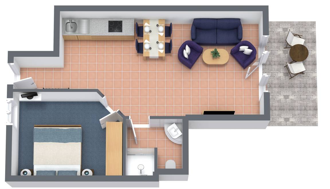 49 m² Ferienwohnung ∙ 1 Schlafzimmer ∙ 2 Gäste