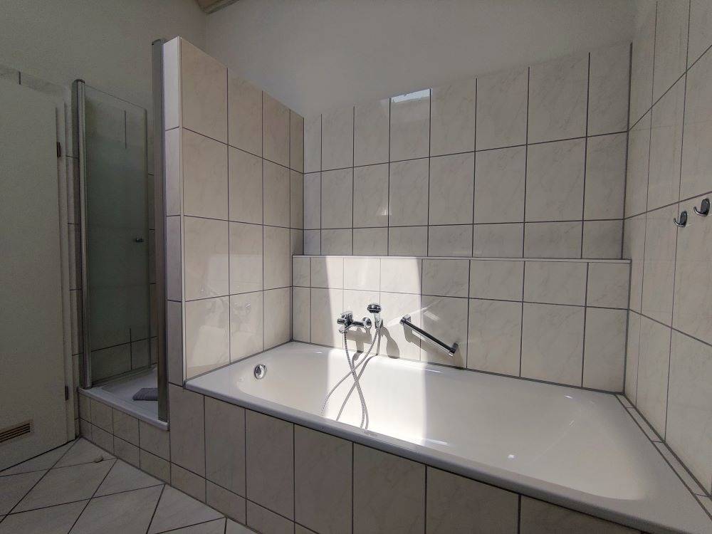 Das Tageslichtbad überzeugt mit Badewanne, Dusche und Doppelwaschbecken – ideal für einen entspannten Start in den Tag. Ein kleines Gäste-WC stehen Ihnen ebenfalls zur Verfügung.