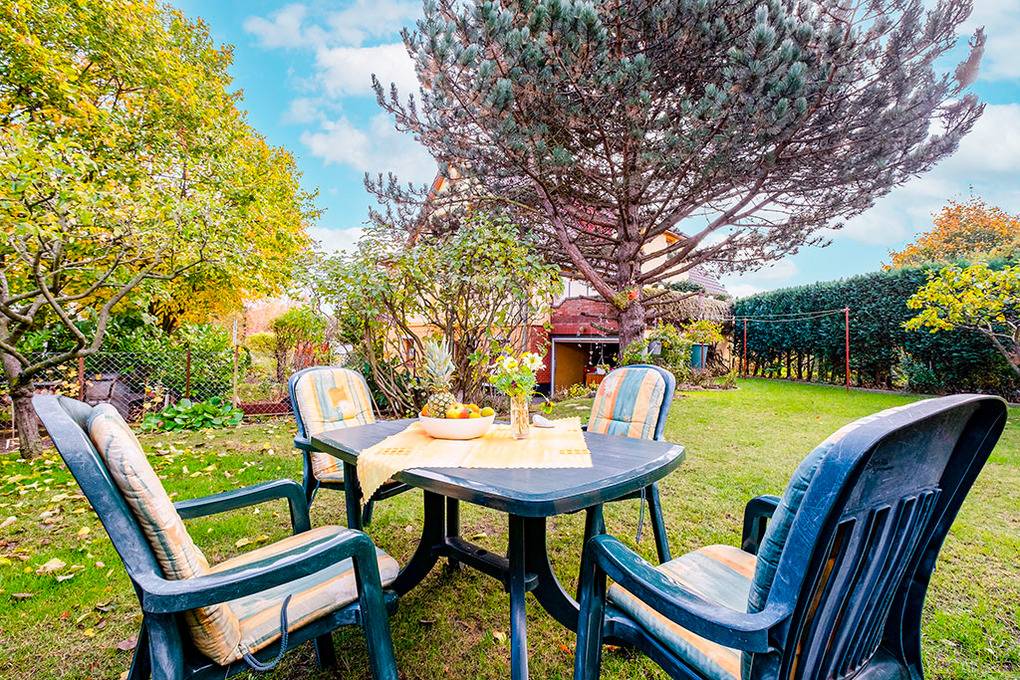 Haus: Schönes Einfamilienhaus mit einer Ferienwohnung im Parterre. Gemütliche Einrichtung. Internetzugang über WLan (Gebühr). Zentralheizung. Separate Sitzecke im Garten des Vermieters. 1 Pkw-Stellplatz am Haus.
