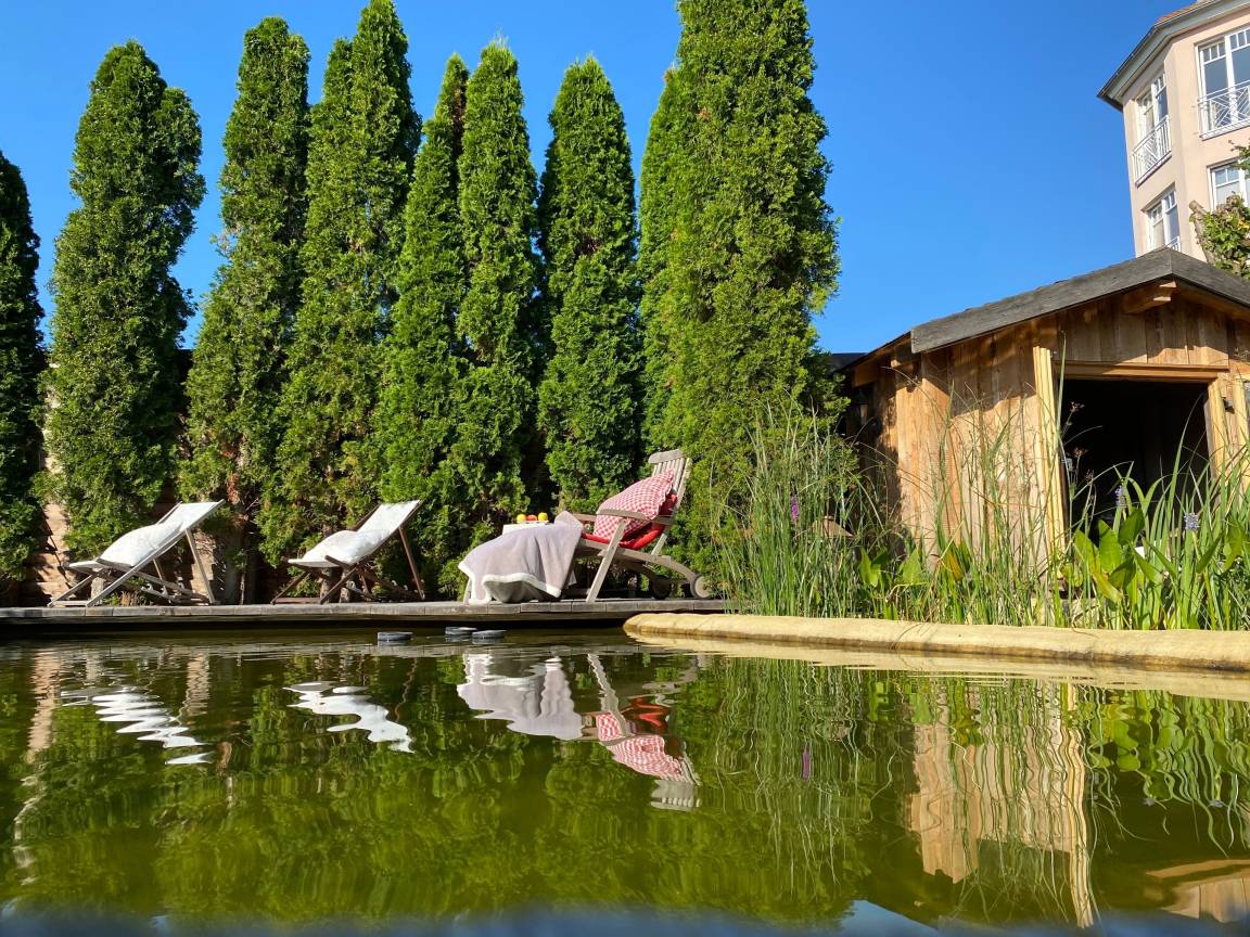 Gesamtgröße ca. 33qm, kostenfreies WLAN, 1 PKW Stellplatz, Nutzung des Garten SPA mit Schwimmteich, Gartensaunen & Ruhebereichen