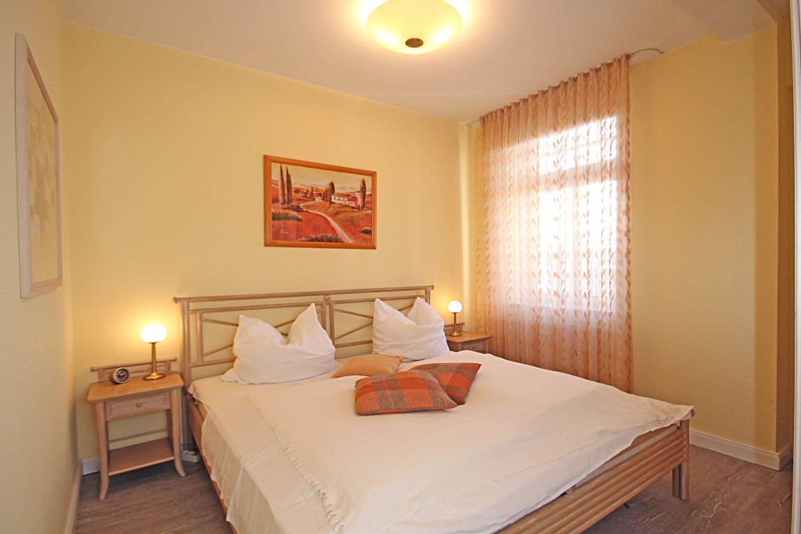 Vom Wohnzimmer aus gelangen Sie auf den einladenden Balkon mit Meerblick, der zur Westseite ausgerichtet ist. Ab mittags können Sie die Sonne genießen und entspannen.