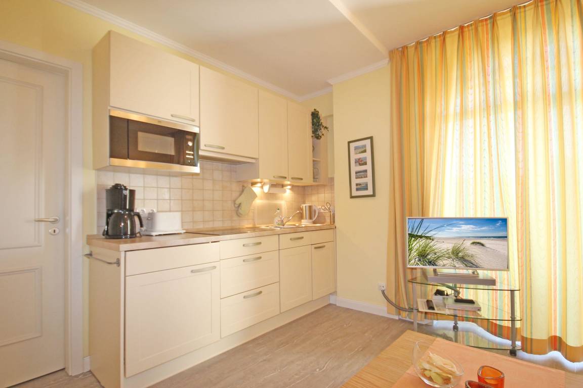 Die angrenzende Küchenzeile ist voll ausgestattet, hier können Sie schnell und bequem Ihre Lieblingsmahlzeiten zaubern. Es ist an alles gedacht!