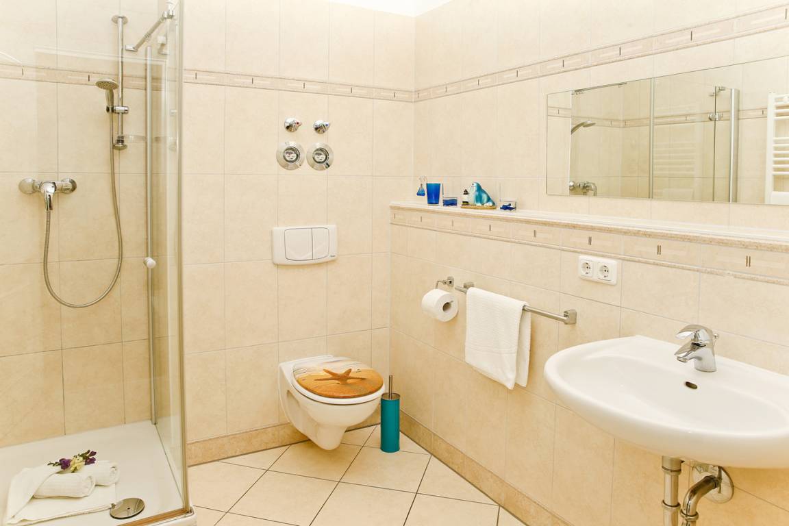 Das Duschbad/WC rundet die schöne Ferienwohnung ab.