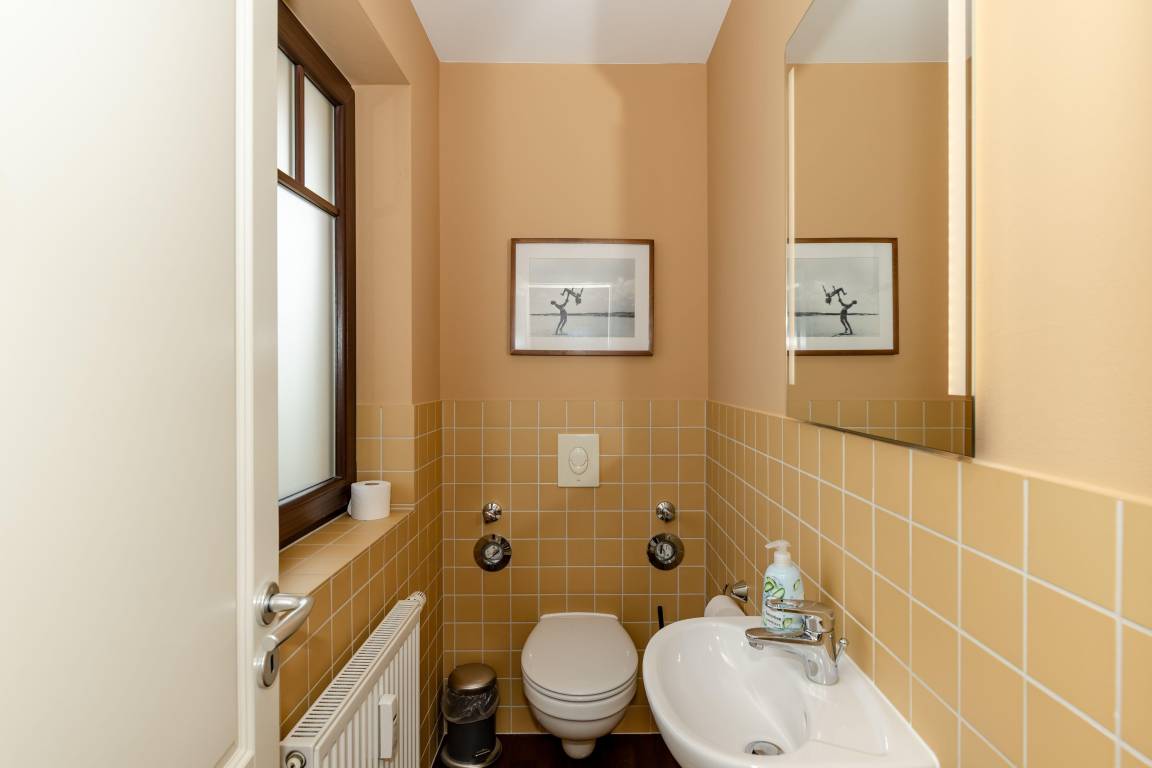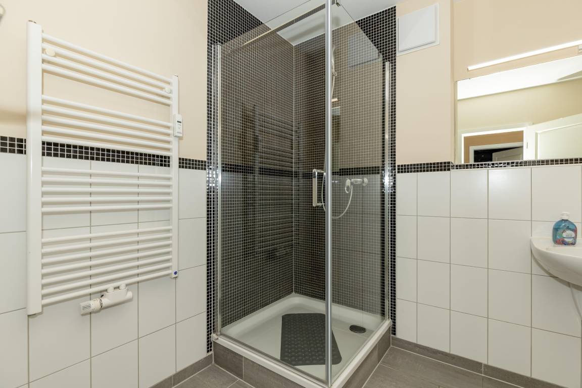 Die Wohnung verfügt über ein Badezimmer mit Dusche. Damit sich niemand in die Quere kommt, ist ein separates WC mit Waschbecken vorhanden.