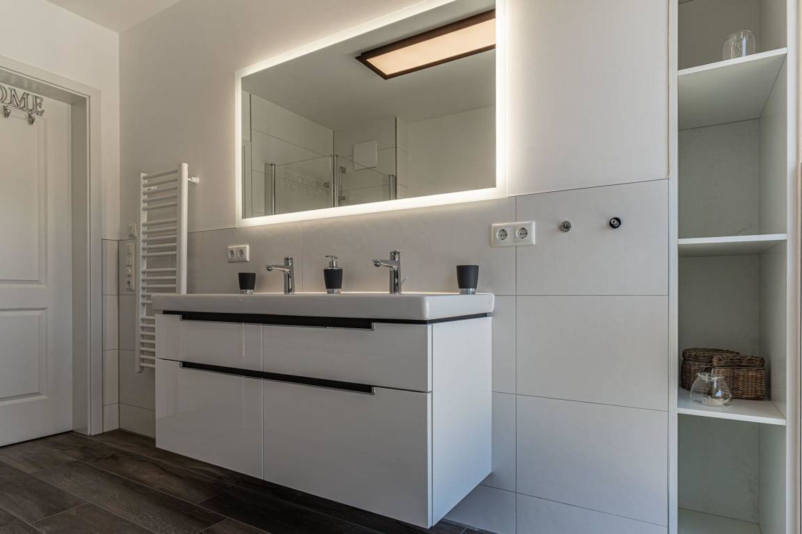 Das Tageslichtbad verfügt über eine Badewanne und eine sparate Dusche. Ein moderner Waschtisch mit genügend Ablagemöglichkeiten für Ihre Utensilien, ein großer Spiegel und ein Föhn sind vorhanden.