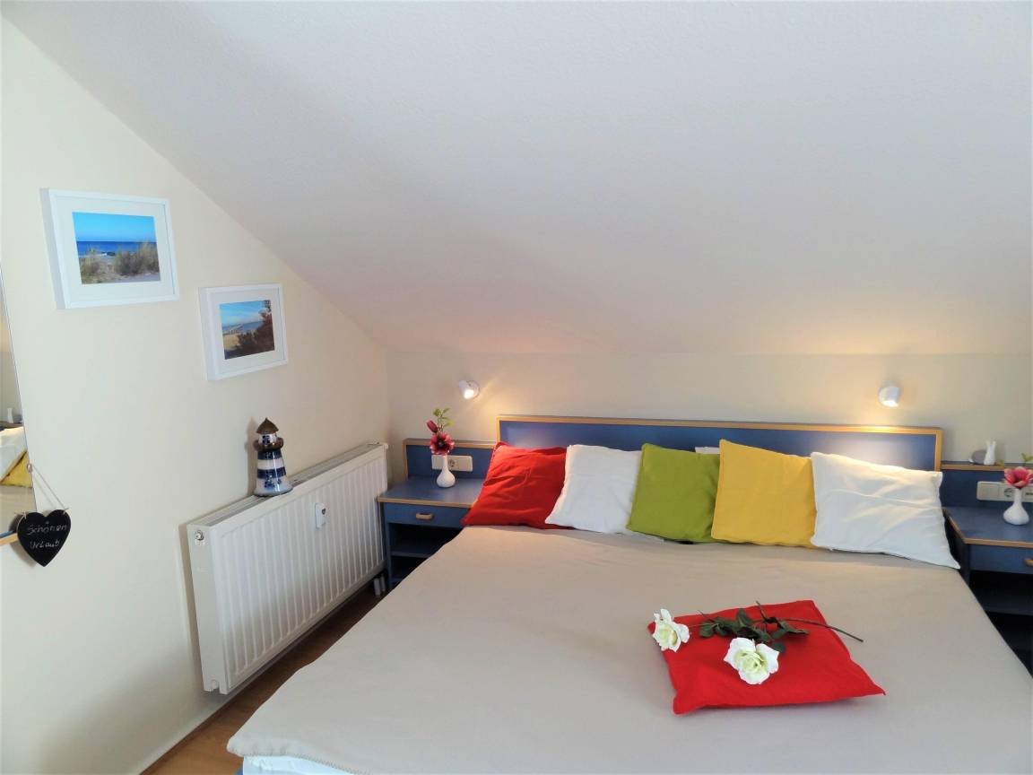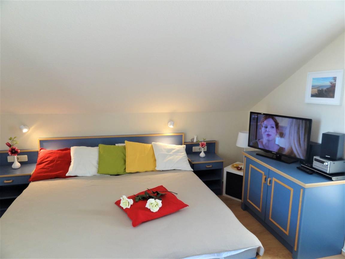 Einen erholsamen Schlaf bietet Ihnen ein großes Doppelbett. So können Sie frisch und munter in einen weiteren ereignisreichen Tag starten.