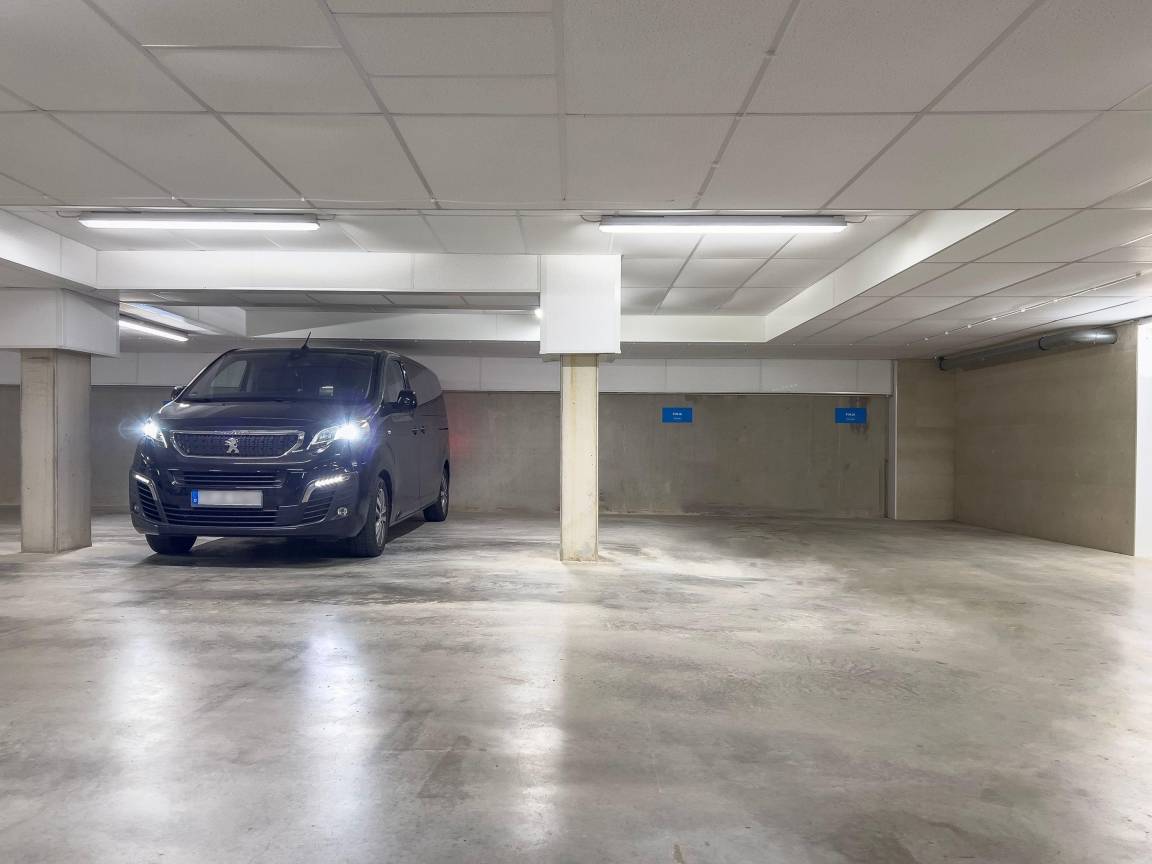 Ein kostenfreier überbreiter Tiefgaragen-Stellplatz gehört zum Apartment und befindet sich in der Hermannstraße 5.