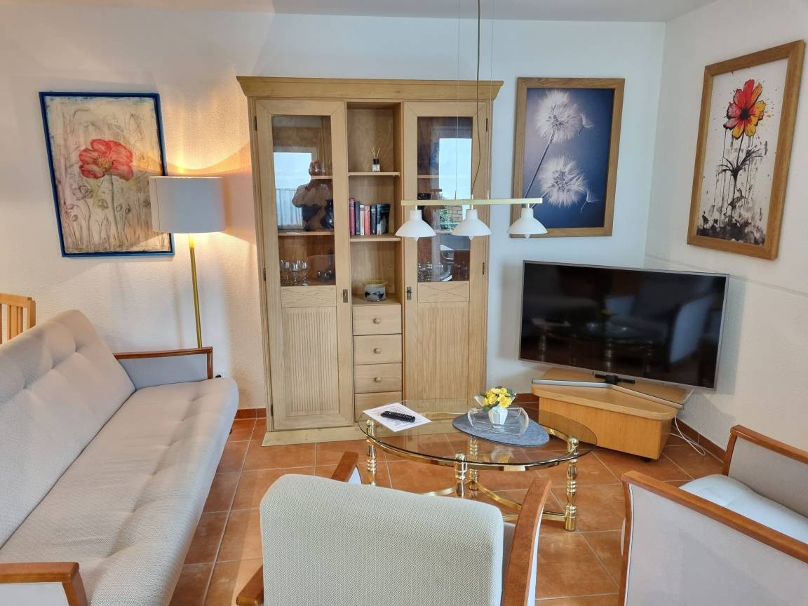 Für einen weiteren Gast gibt es eine bequeme Schlafcouch im Wohnzimmer.