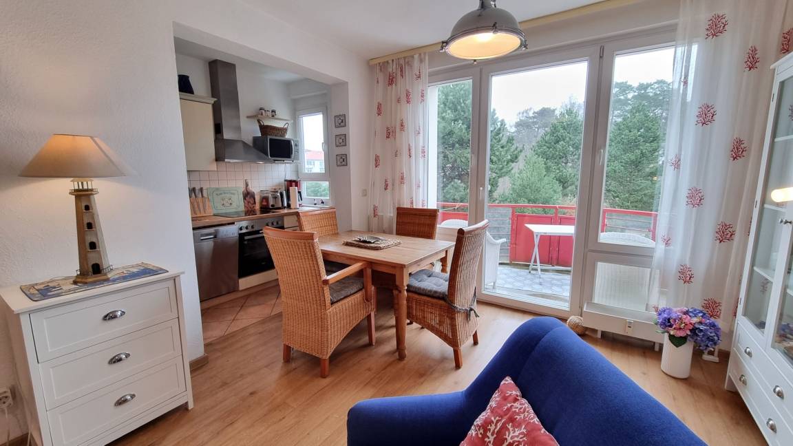 Das Appartement im 1. Obergeschoss ist liebevoll eingerichtet und verfügt über einen Balkon in Richtung Norden.