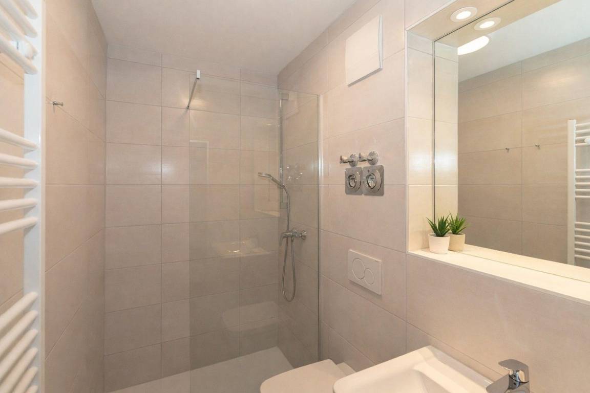 Das Bad verfügt über eine Dusche, ein WC, ein Waschbecken mit Unterschrank, einen Handtuchheizkörper, einen beleuchteten Spiegel, Tritthocker und viele Ablagemöglichkeiten.