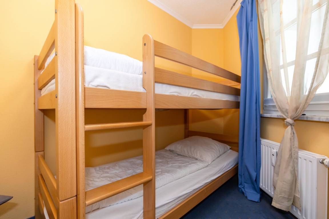 Im zweiten Schlafzimmer befinden sich ein Etagenbett sowie ein Kleiderschrank.