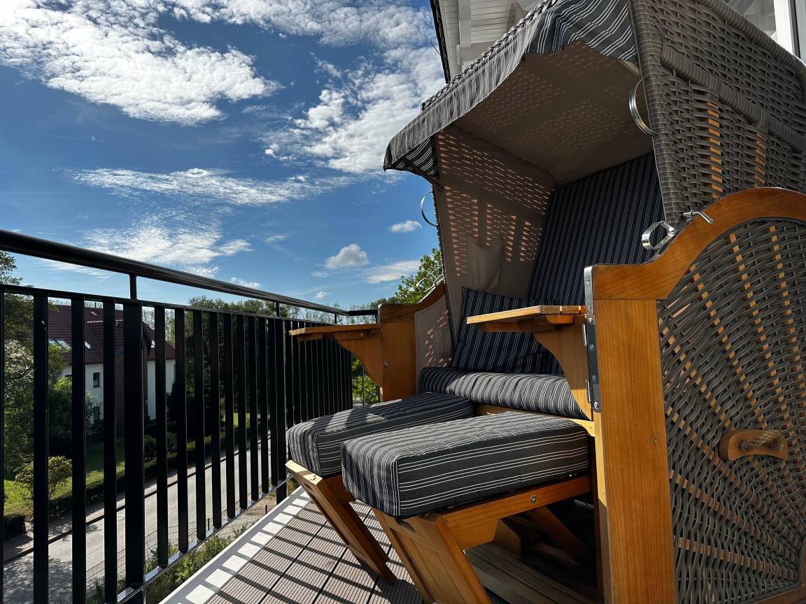 Ein großzügiger Südbalkon lädt mit seinem Strandkorb zum Entspannen und Verweilen ein. Starten Sie hier mit einem Frühstück in den Tag oder lassen Sie den Abend in schöner Stimmung ausklingen.