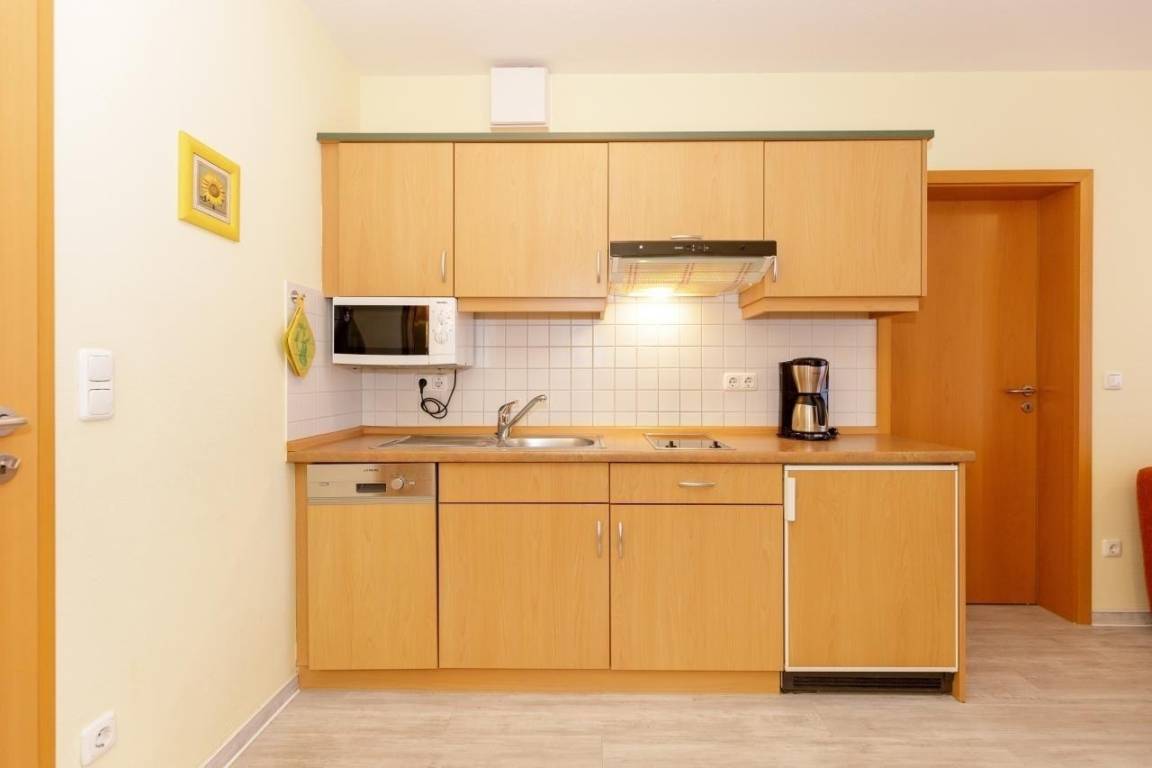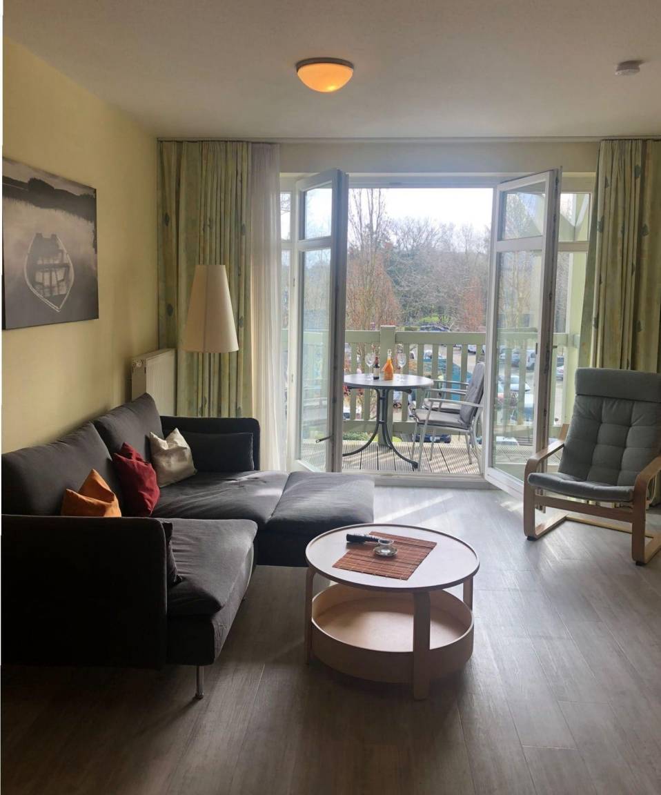 Das 2-Zimmer-Apartment mit Holzoptik-Bodenbelag befindet sich in der 2.Etage mit Aufzug im Apartmenthaus Waldeck. Mit rund 50 m² Wohnfläche und einem Balkon mit seitlichem Seeblick. Das geräumige Apartment besteht aus einem Wohnzimmer und einer voll ausgestatteten Küchenzeile mit Geschirrspülmaschine, Kühlschrank, Mikrowelle, Zwei-Platten-Cerankochfeld, Kapsel-Kaffeautomat sowie eine normale Kaffeemaschine, einem Wasserkocher und einem Toaster.